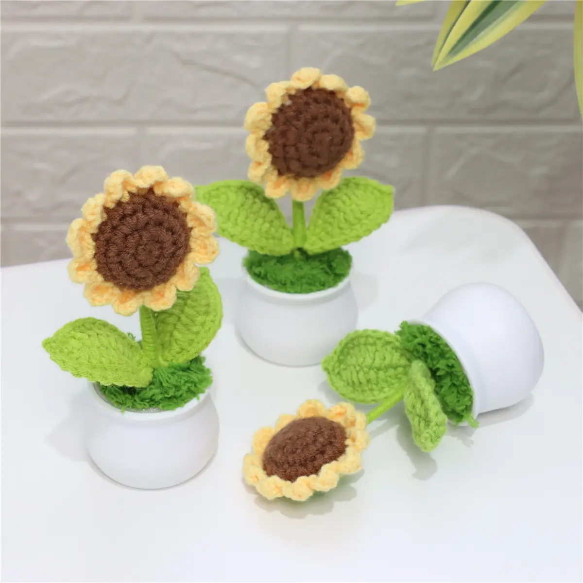 Exquisitely handcrafted mini yarn sunflower potted plants, perfect for graduation season and a beautiful home décor.