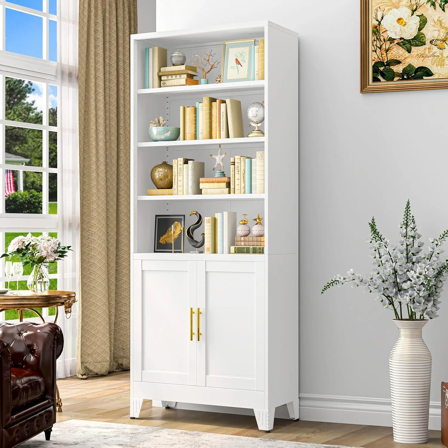 Elevate your space with this 71" tall white metal storage cabinet. Perfect for study, office, or bedroom, it offers versatile storage solutions. The cabinet features 4 adjustable shelves, allowing you to customize the layout to your needs. It also includes doors for added privacy and organization. Ideal for keeping your space tidy and functional.