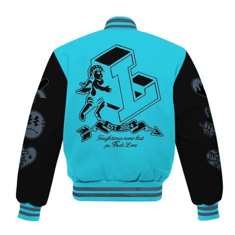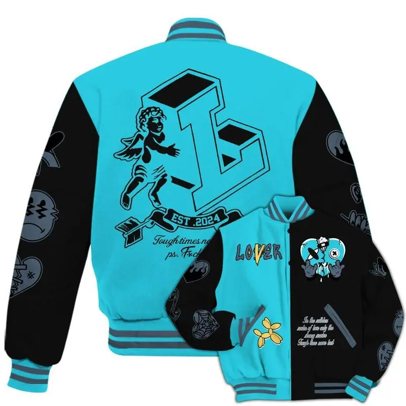 Retro Gamma Blue 11s - Loser Lover Heartbreak All Over Print Baseball Jacket Unisex Outfits, Retro Cupid Archer Black Angel With 3D Letter L Graphic Baseball Jacket, Sneaker Match Gifts Idea for Her Him
