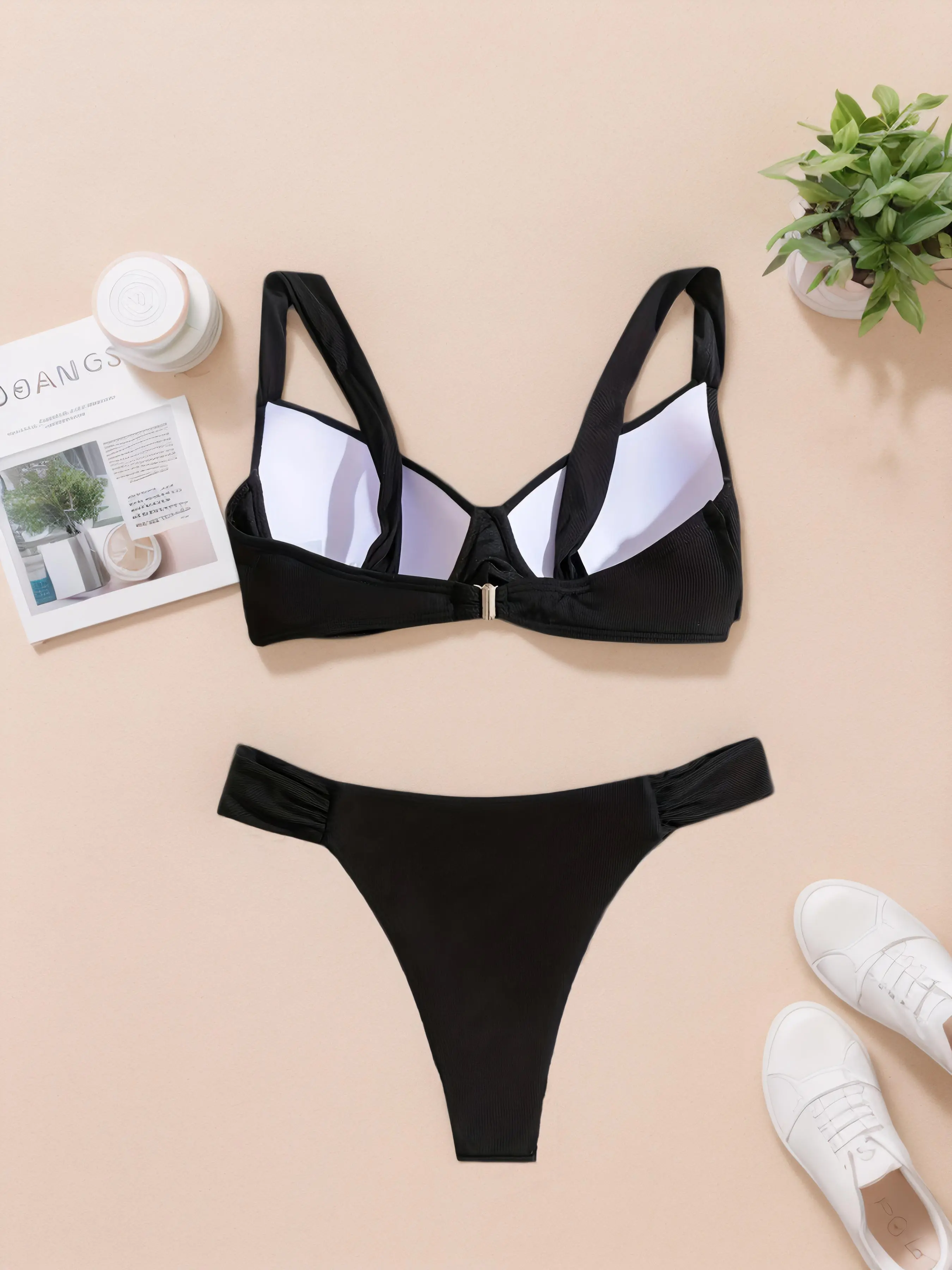 This bikini set is a must-have for your beach bag. It's perfect for women who want to stay stylish and comfortable. The set is easy to pair with other beach accessories.