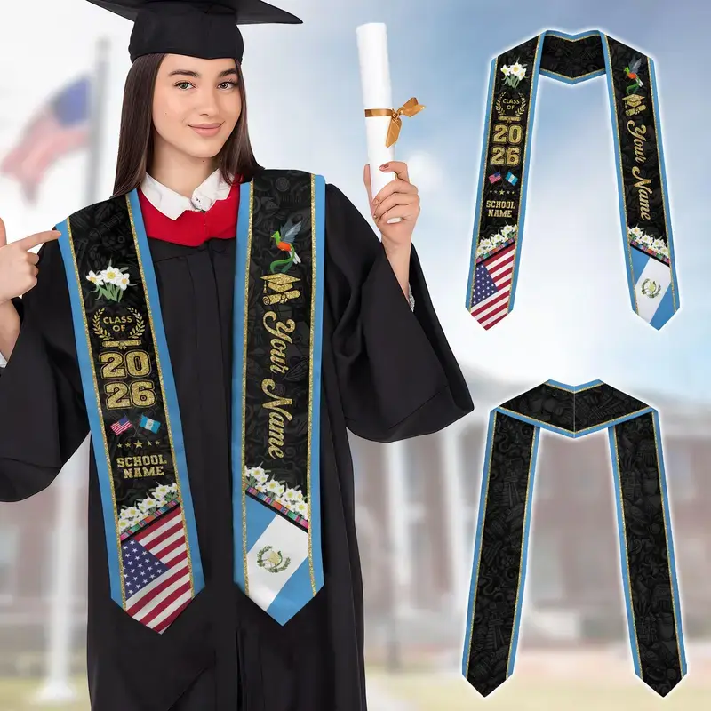 Customized 2026 Guatemalan American Flag Graduation Sash, Guatemala Graduation Stole, Custom Graduation