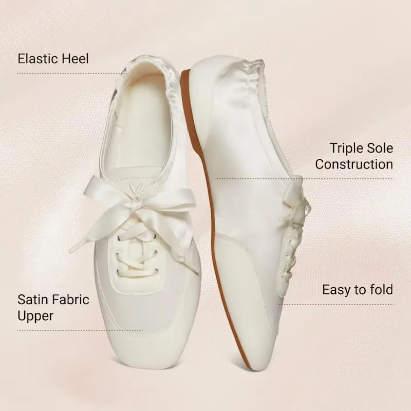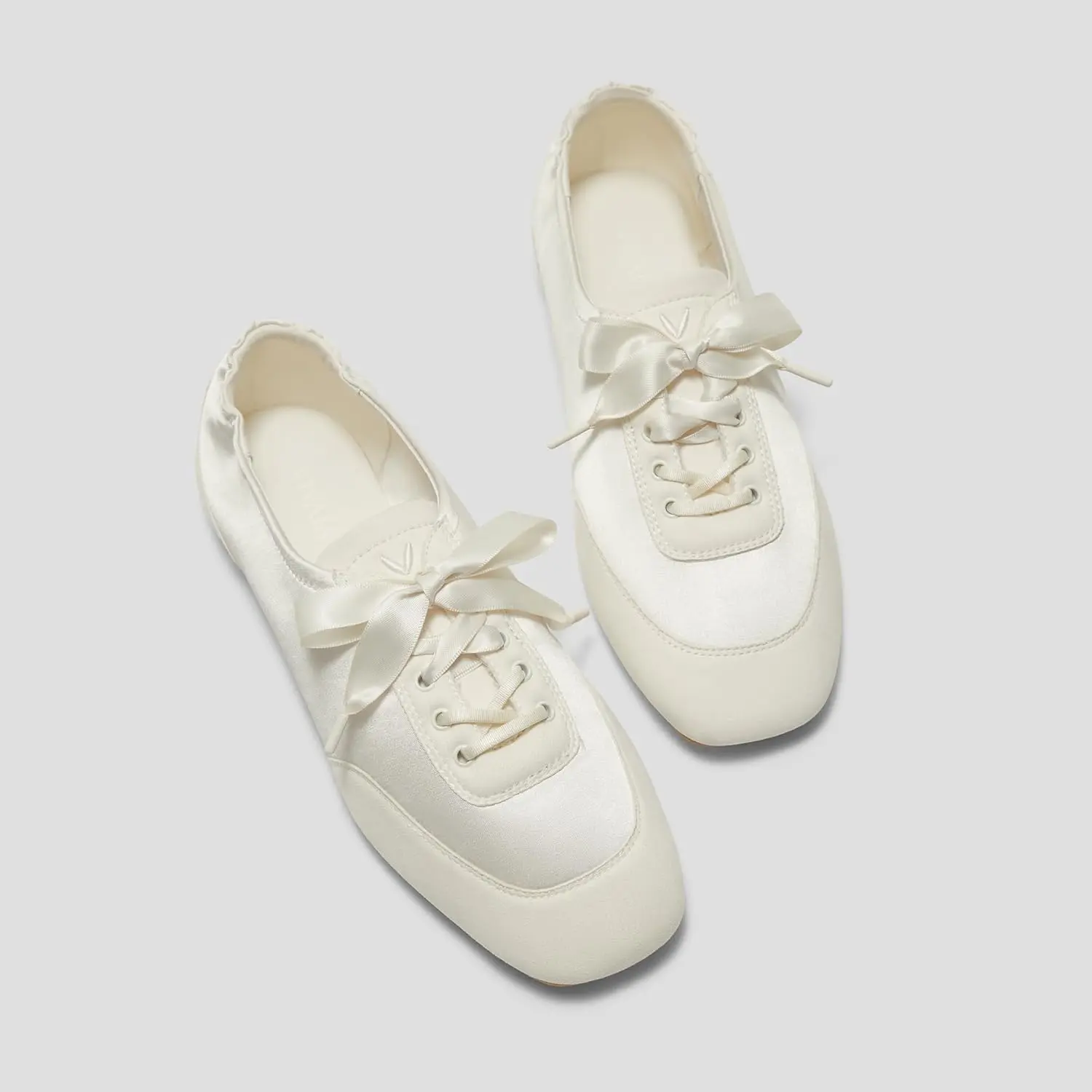 The Satin Sneakerinas you love—now reimagined with a bubble sole that brings a soft retro attitude and added underfoot flexibility to every step. Blending barefoot-like ease with the refined sheen of satin, they delivers an elevated yet effortless everyday feel that’s sure to please. Comes with two interchangeable shoelace styles for a bit of playful personalization—letting you shift from polished to expressive to your heart’s content.