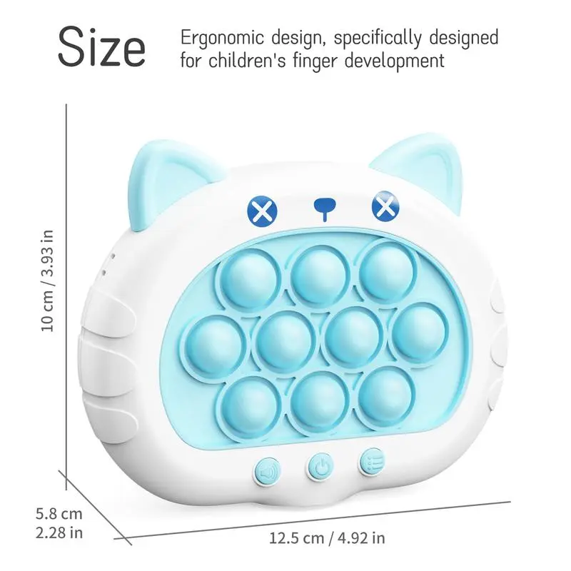 This game is designed to entertain and soothe. It's a great addition to any child's playtime. Enjoy the fun and benefits of this fast-paced, quick push game. Perfect for kids who love interactive and stress-relieving activities.