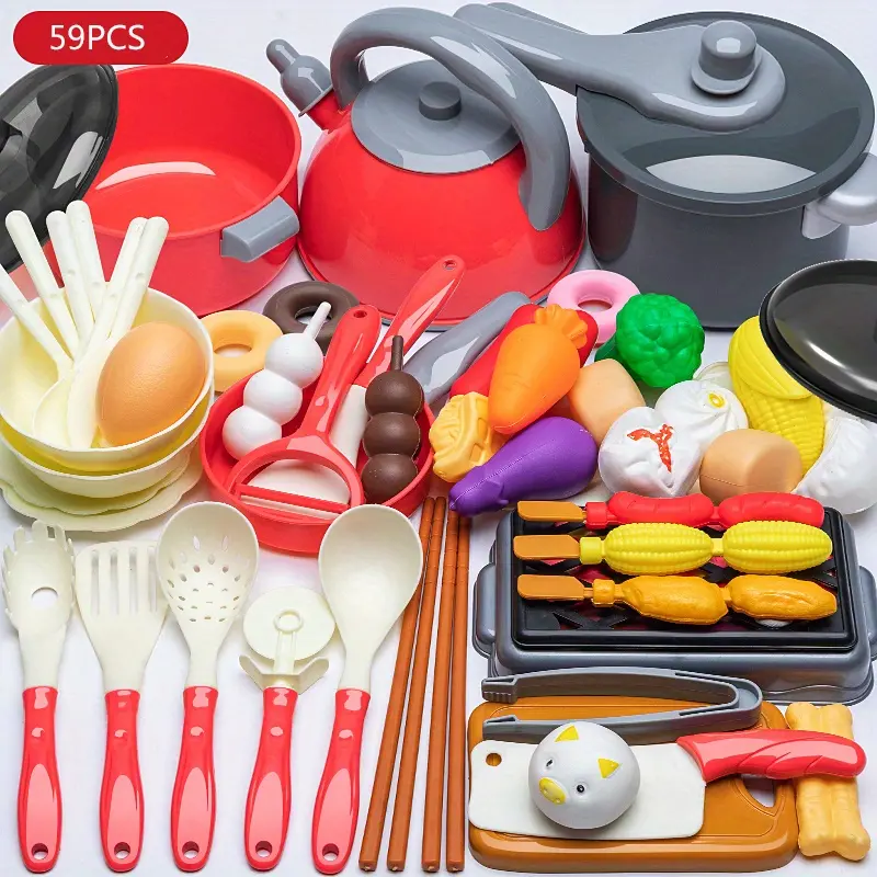 Kitchen Play Set, 1 Set Simulated Kitchen Utensils Set, Pretend Play , Kitchen Accessories , Cooking Set, Fun Kitchen Playthings, Gift Dinosaur Egg Hatching Cards Toy Mystery Dumpling Giant Cheese Stress Valentine Slime Kit Handmade Grape Crystal Mochi