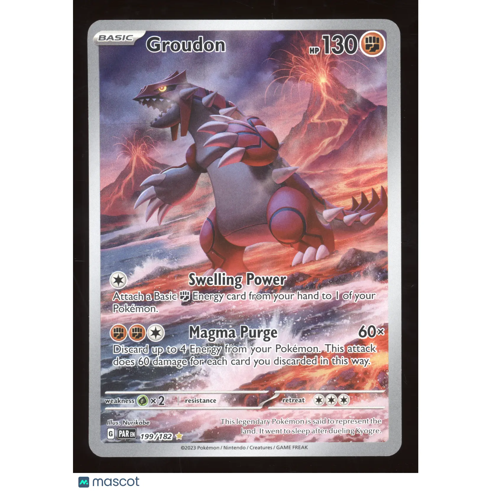 You are purchasing a 2023 Pokemon S&V Paradox Rift Groudon Secret Rare #199/182. You will receive the exact item in the photographs. Thank you for looking. Listed With Mascot.