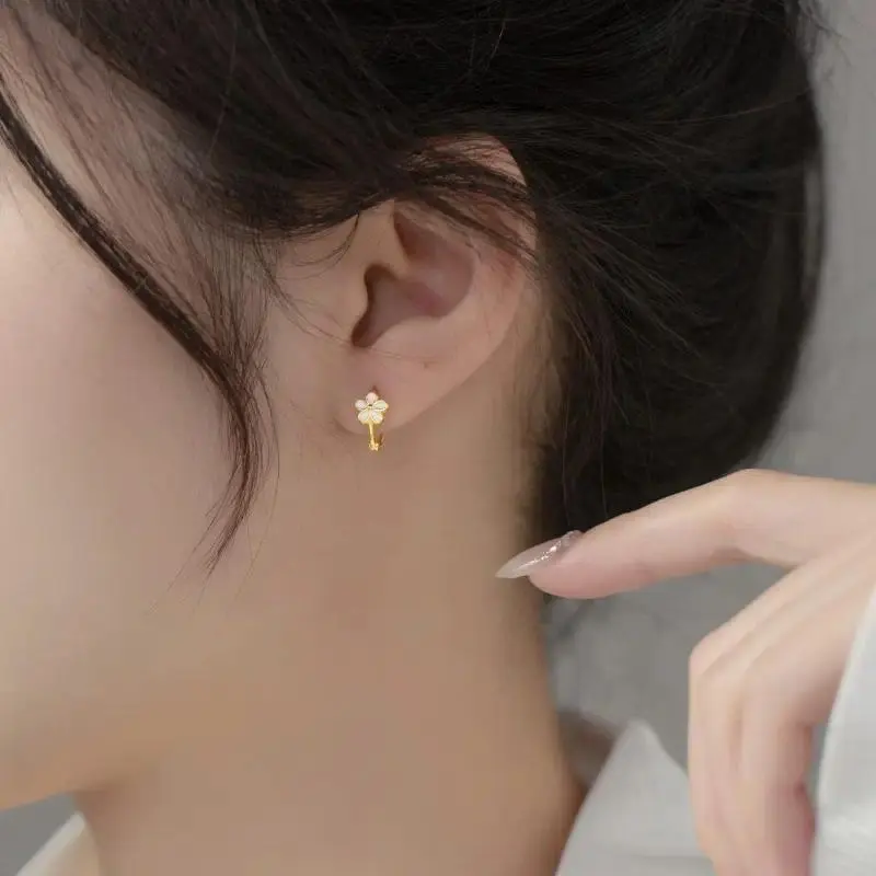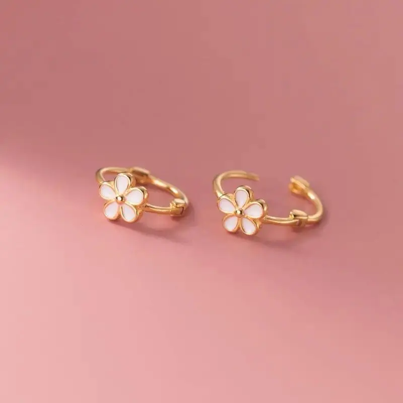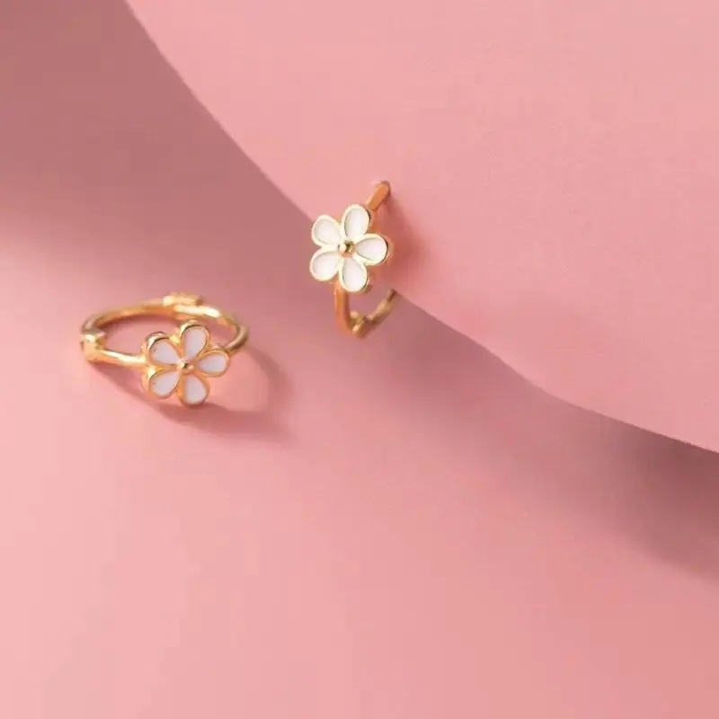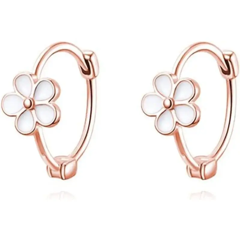 925 Sterling Silver Flower Huggie Hoops - Dainty Daisy Earrings for Cartilage & Helix, Waterproof Hypoallergenic Sleepers, Perfect for Ear Stacking