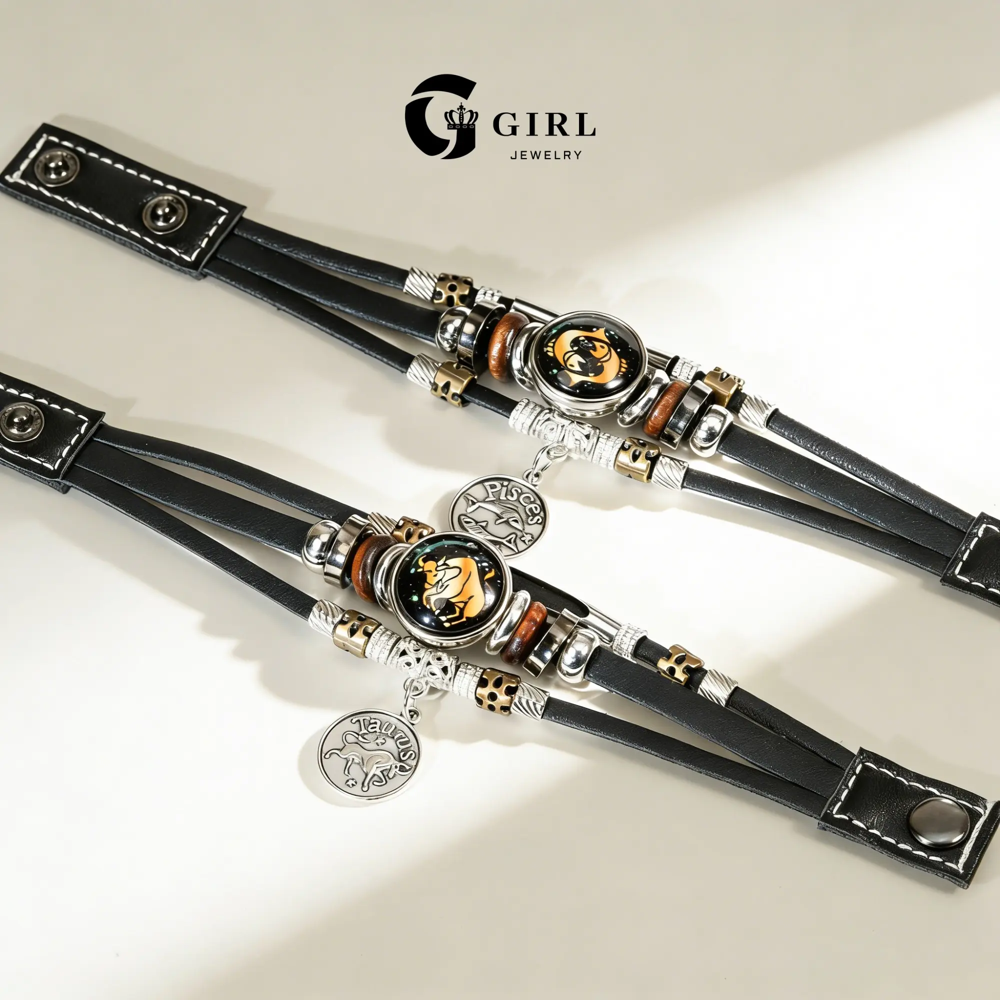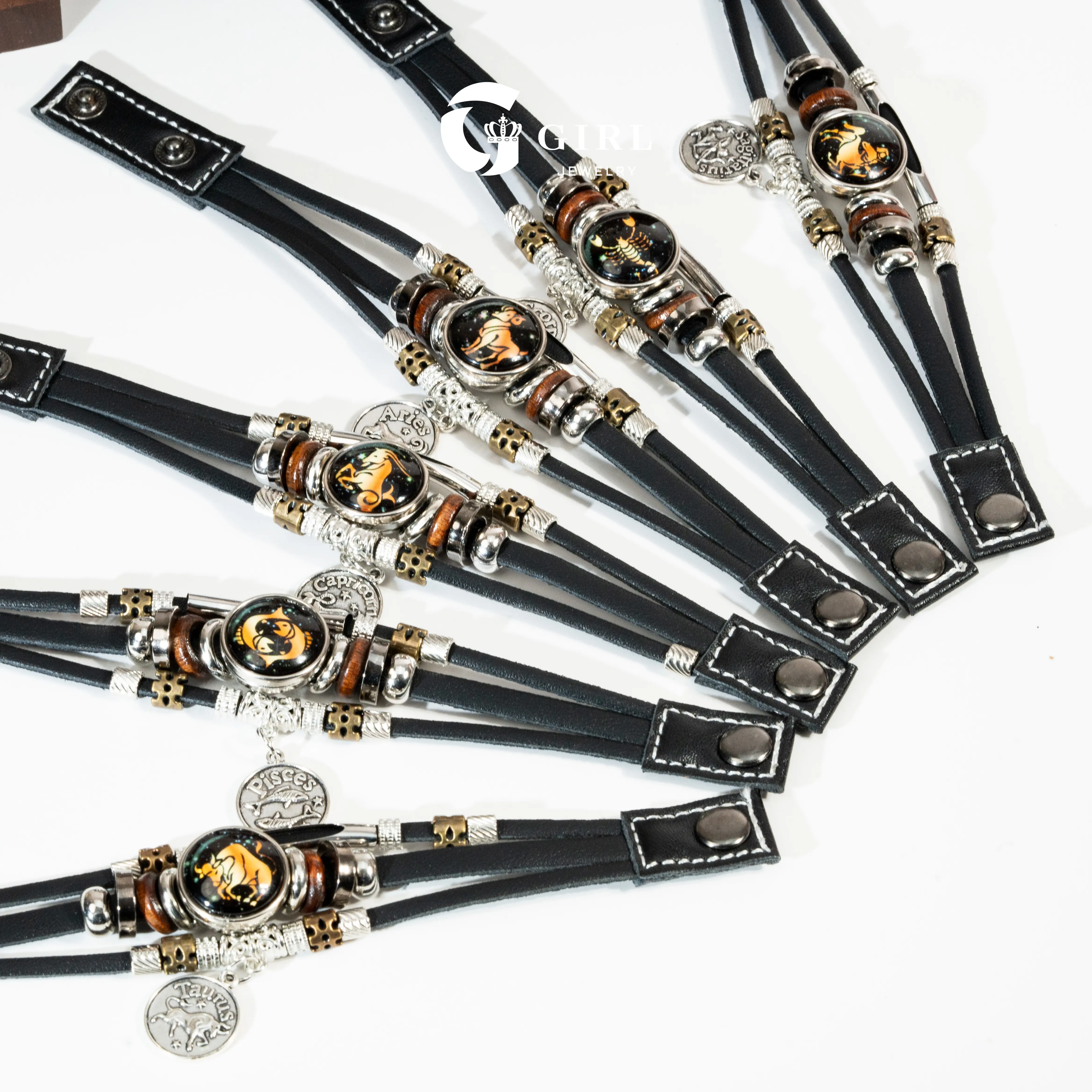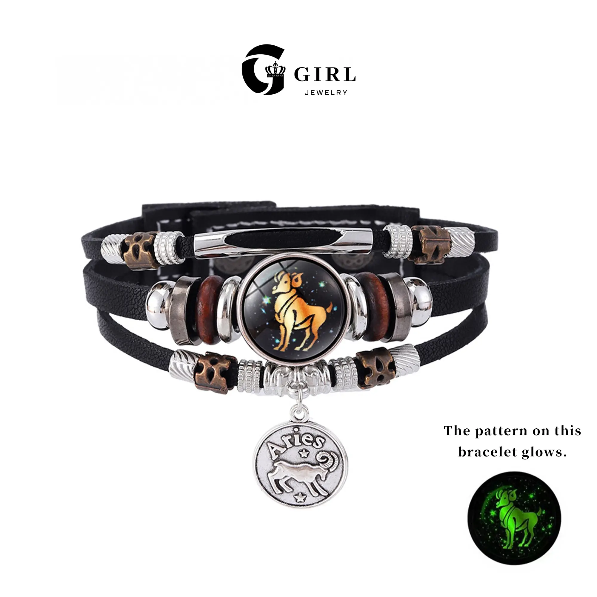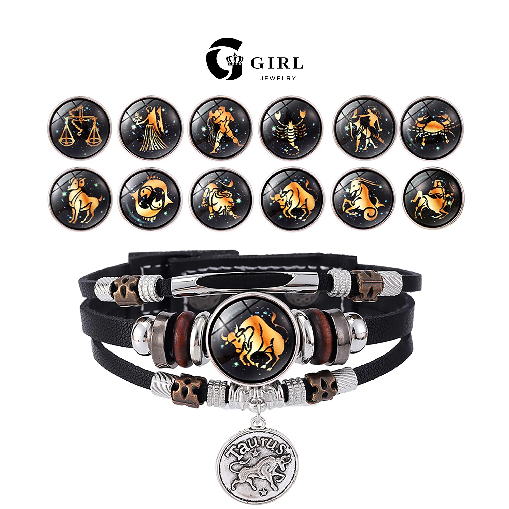 GGIRL 12 Constellation Vintage Bracelet for Men Women Braided Punk Leather Bracelets Gift Glow in The Dark Bracelet