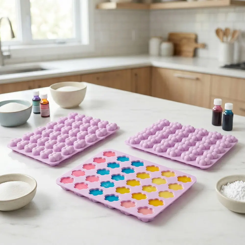 3pcs 12-Cavity Flower-Shaped Chocolate Silicone Molds, DIY Candy Pudding Baking Cookie Birthday Cake Decoration