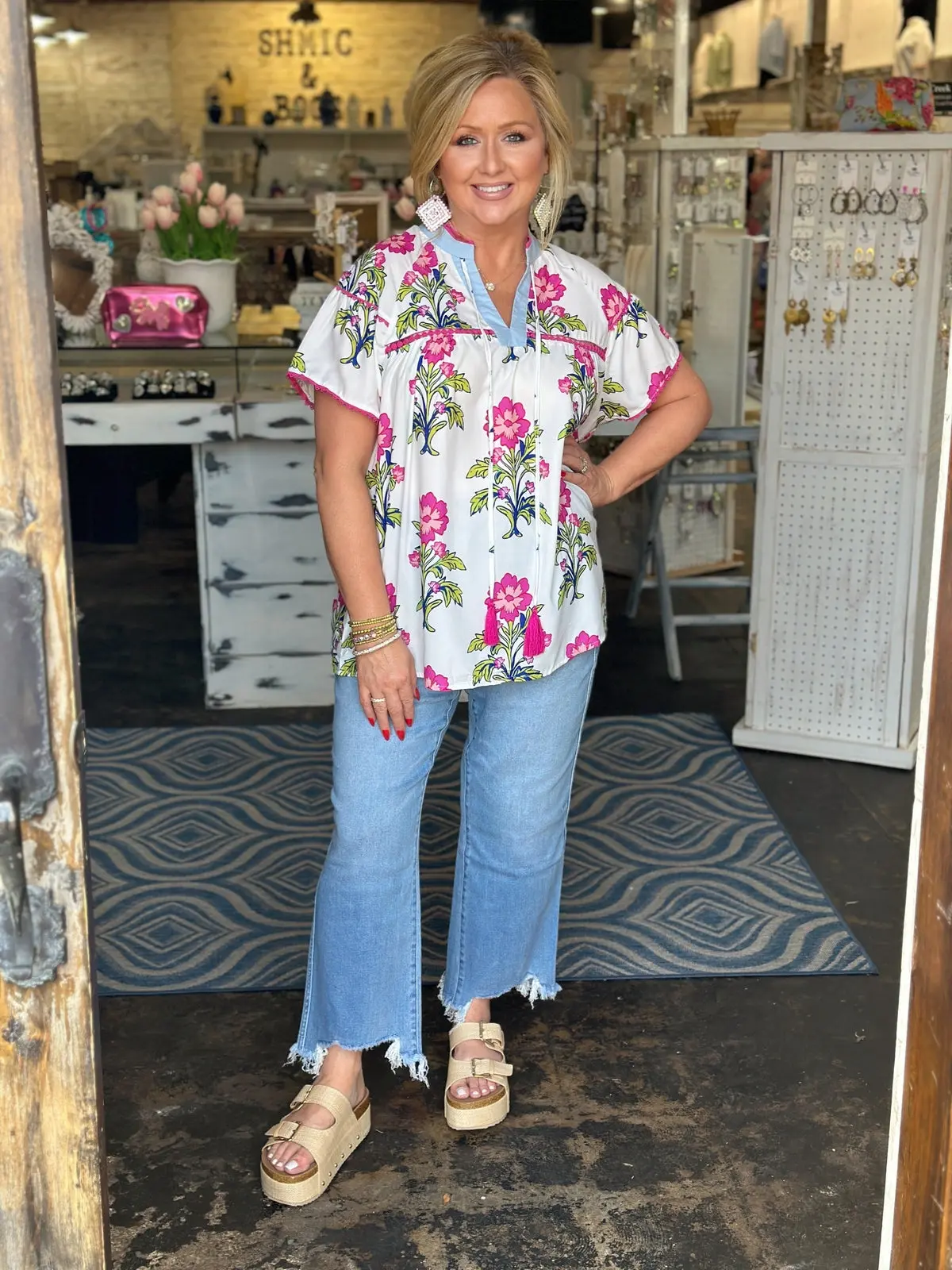 Carissa Ric Rac Top- Hot Pink/ Turquoise