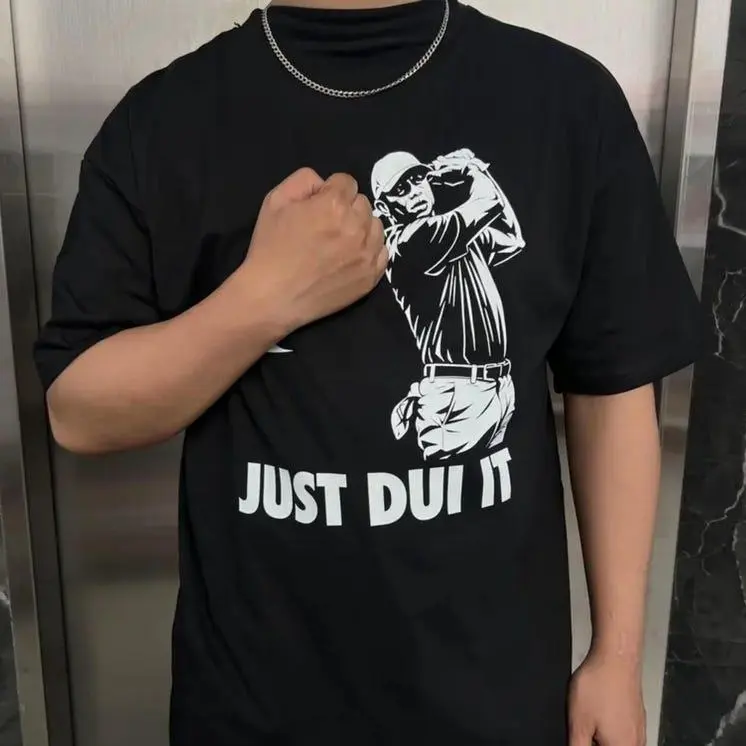 Funny Golf Legend Mugshot Tee | Just DUI It Parody Shirt | Sarcastic Golfer Meme T-Shirt | Retro Sports Legend Graphic Top