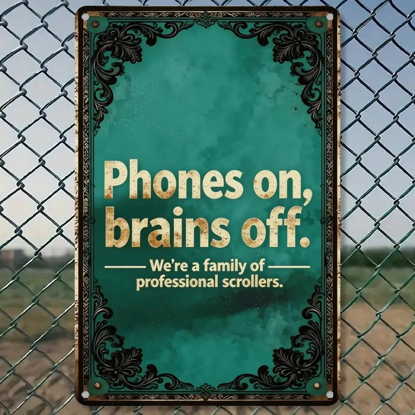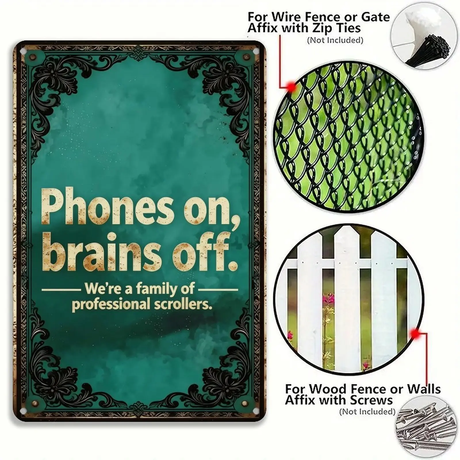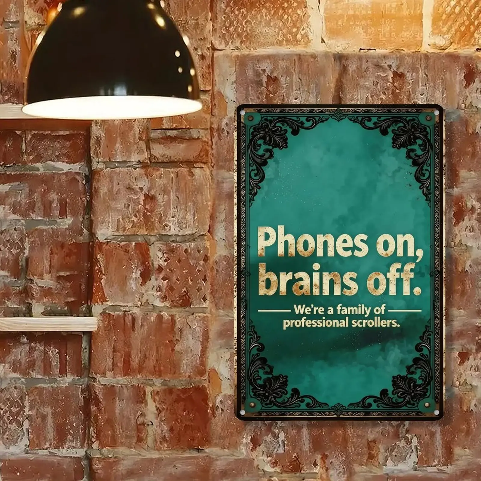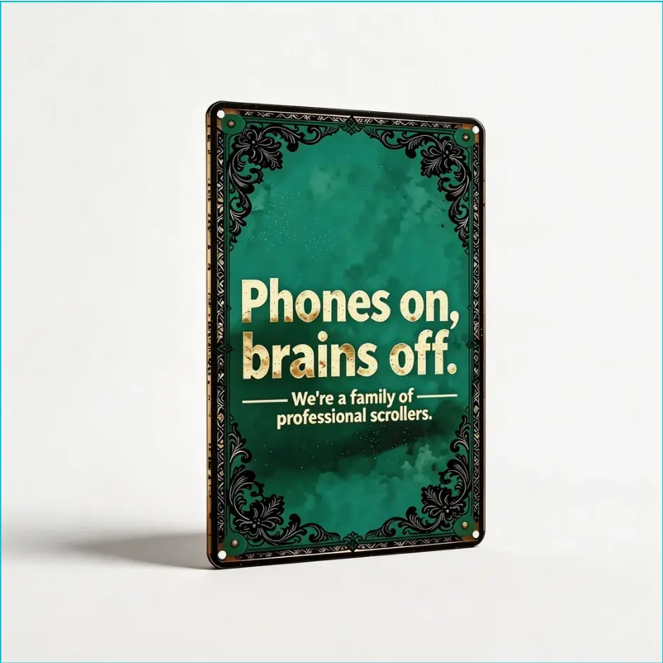 humbug poster Funny Sarcastic Metal Wall Sign 8X12in.| Phones on Brains Off Family Scroll Sign | Home Wall Decor for Living Room Kitchen