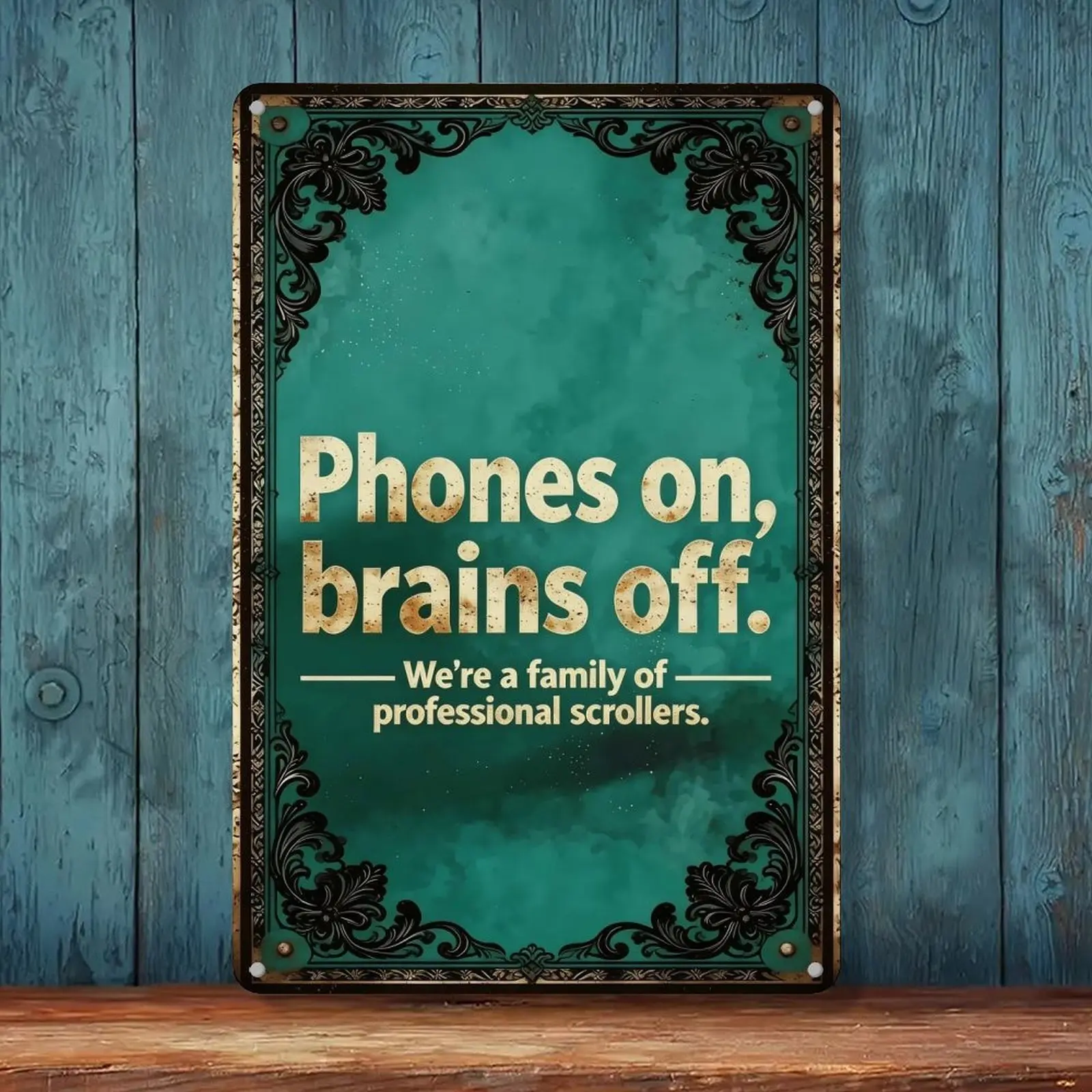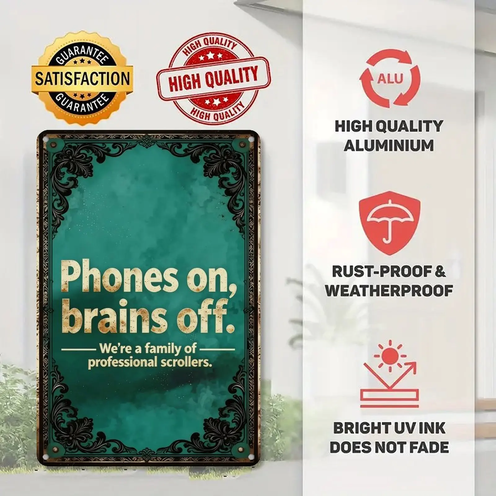 5. humbug poster Funny Sarcastic Metal Wall Sign 8X12in.| Phones on Brains Off Family Scroll Sign | Home Wall Decor for Living Room Kitchen