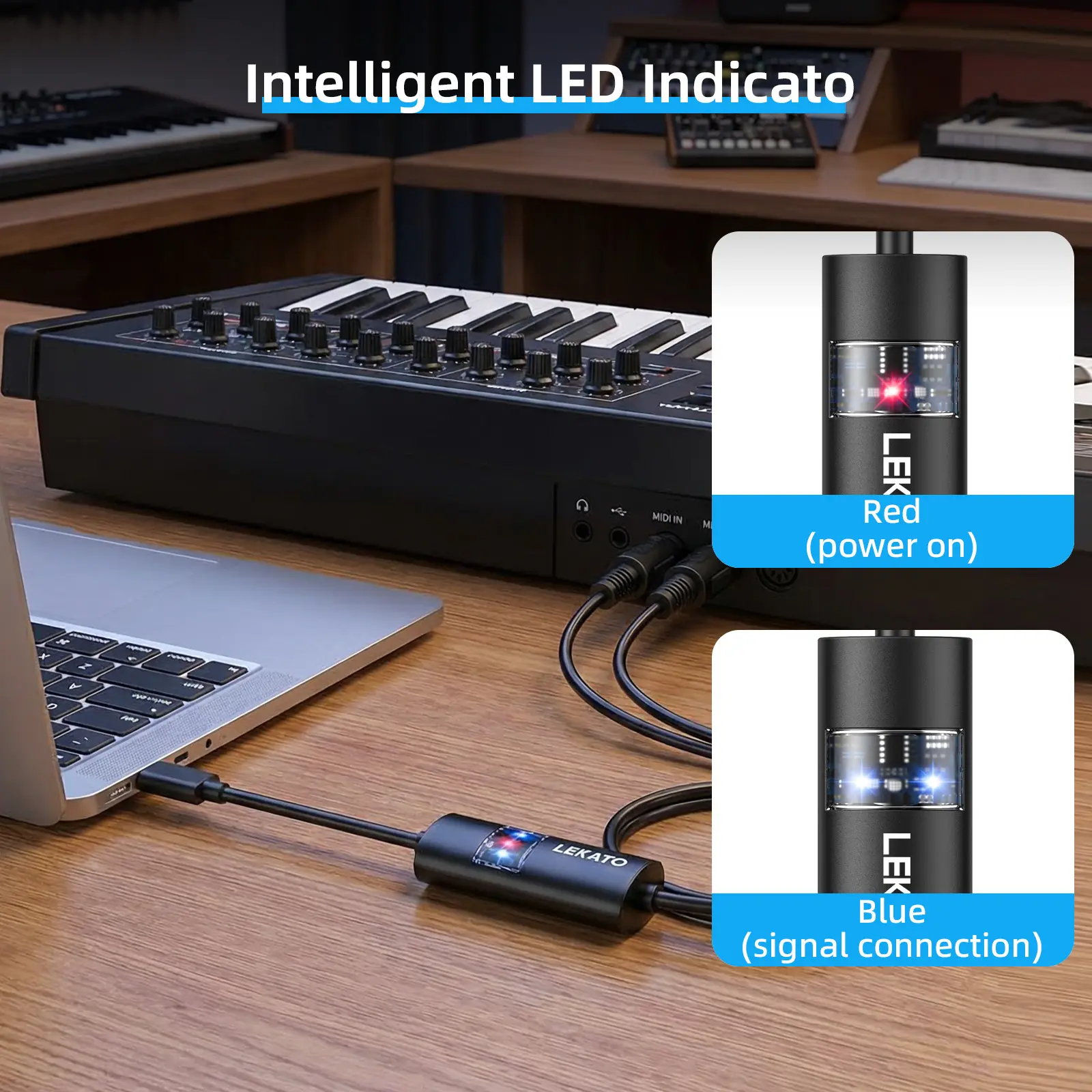Connect your musical vision without limits. This LEKATO MIDI to USB-C cable unleashes professional-grade connectivity for keyboards, synthesizers, and controllers. Dual input/output ports give you complete control over your studio setup, whether you're crafting beats on Windows or Mac. At 6.5 feet, you've got the reach to position gear exactly where inspiration strikes. Built for serious musicians and producers who refuse to compromise on quality or flexibility.