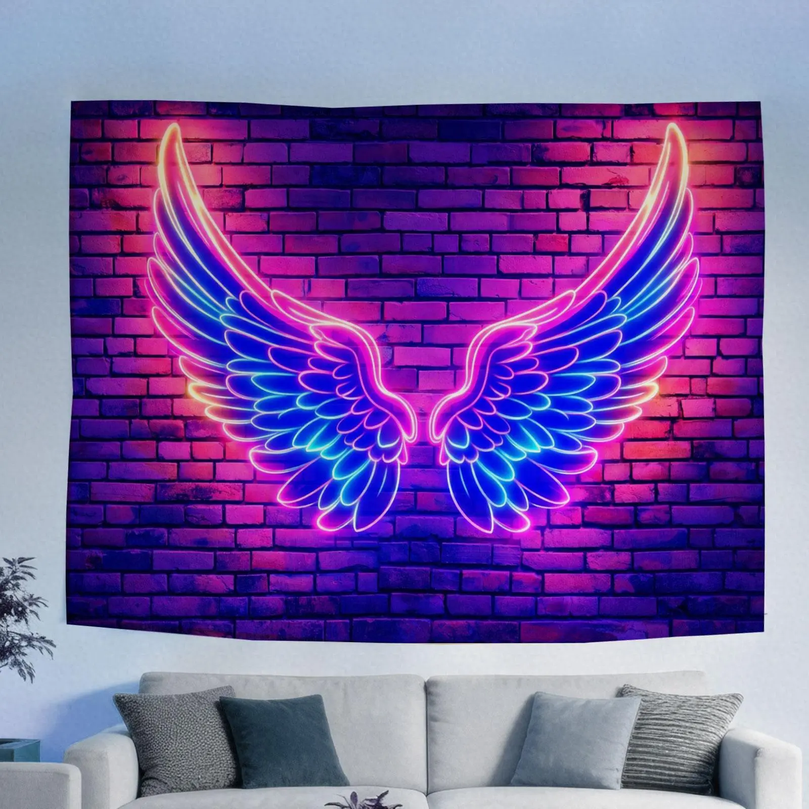 Neon Wings Psychedelic Nightglow Tapestry - UV Blacklight Wall Hanging Electric Dream Futuristic Neon Style Suitable for Home Decor Valentine's Day Easter St.Patrick's Day Halloween Christmas and Other Festival Decorations.