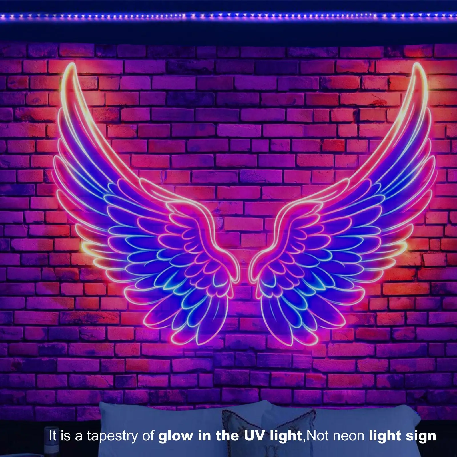 5. Neon Wings Psychedelic Nightglow Tapestry - UV Blacklight Wall Hanging Electric Dream Futuristic Neon Style Suitable for Home Decor Valentine's Day Easter St.Patrick's Day Halloween Christmas and Other Festival Decorations.