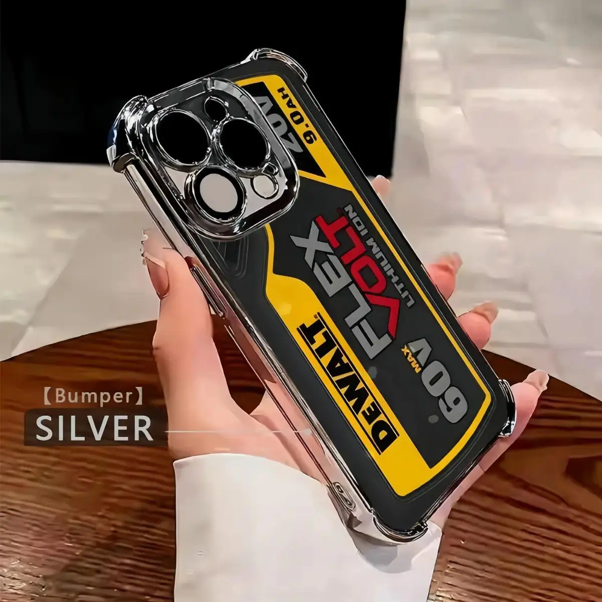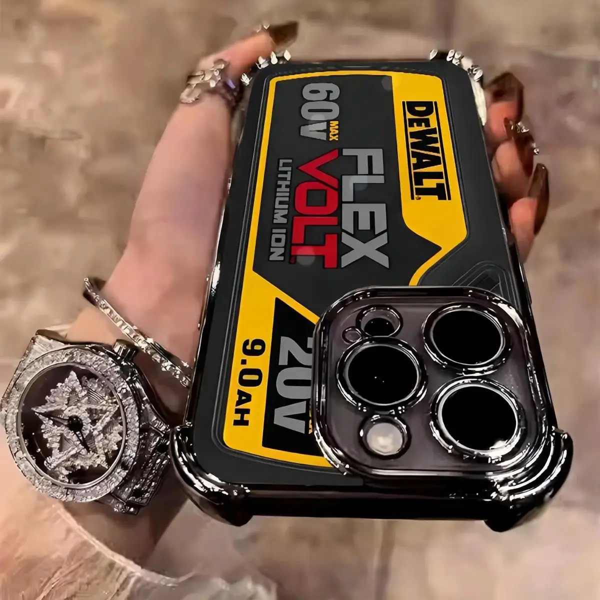 Personalized and minimalist industrial style hardcore phone Suitable for iPhone 16/15/14/13/12/11 Pro Max Plus electroplated anti drop soft phone 015 Screen Protector Protection Smartphone Protective luxury phone Black dewalt tough phone case