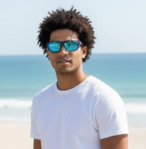 Blue Tinted Lenses: These sunglasses feature blue-tinted lenses, ideal for outdoor use.