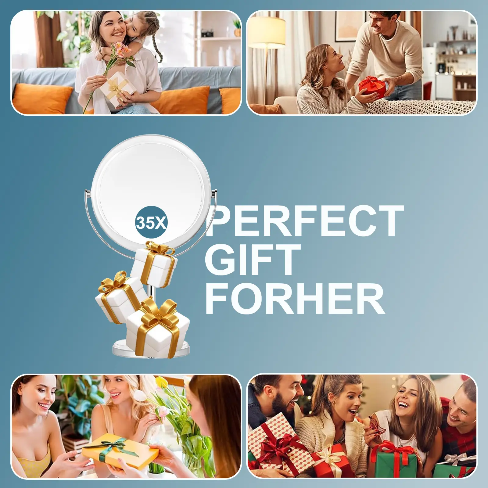 35X Magnifying Makeup Mirror, Dual-Sided 1X/35X Vanity Mirror with 360° Rotation, Detachable Acrylic Travel Mirror for Desk, Bathroom, Bedroom – Perfect Precision Makeup Gift for Women