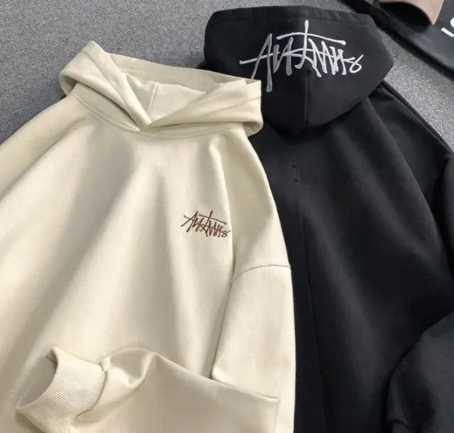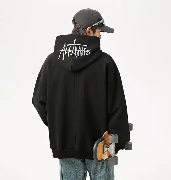 New Men's Heavyweight Hand-Painted Letter Embroidery Hooded Sweatshirt Loose Fit Jacket Casual Cotton Streetwear Flair