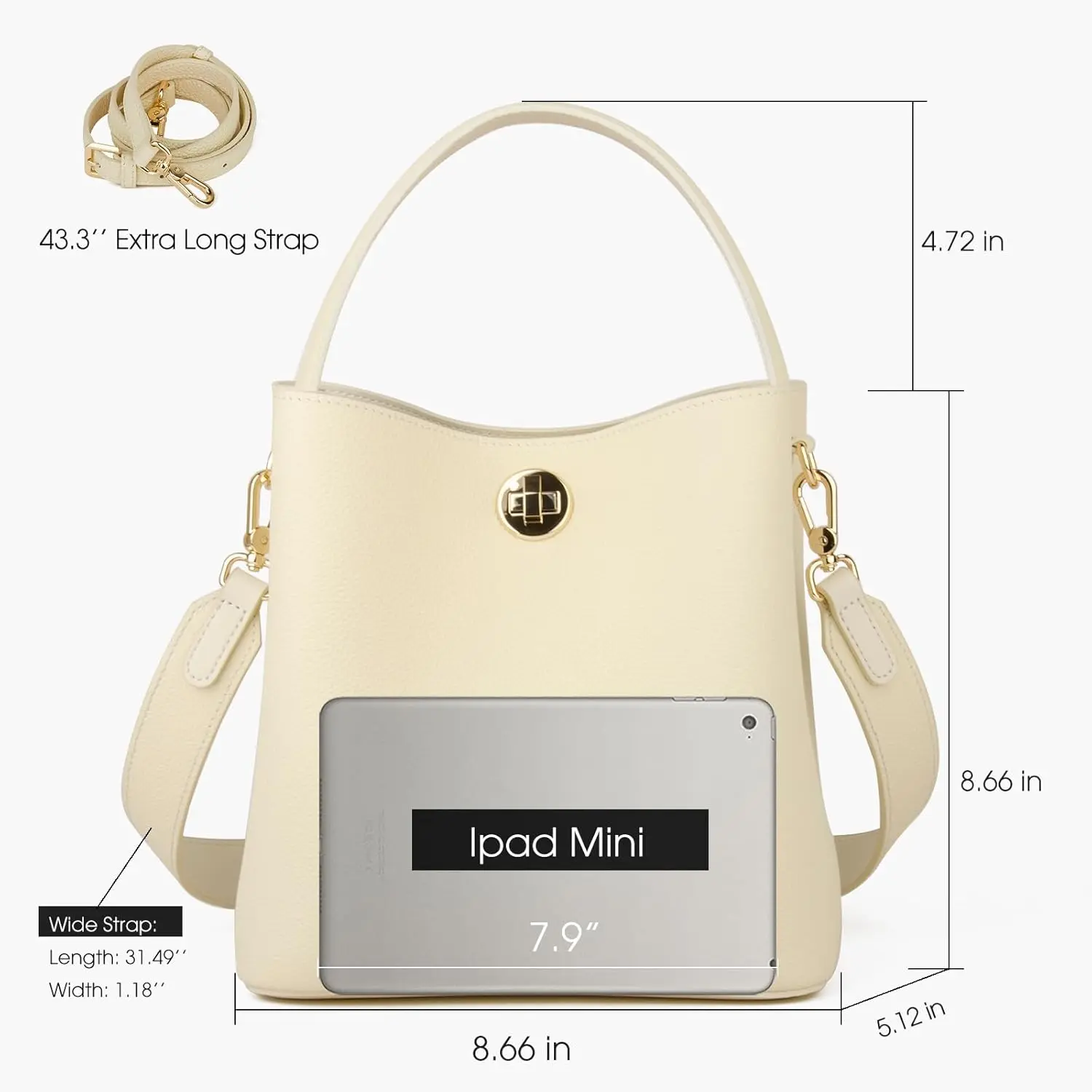 ·DIMENSIONS: 8.66” L x 8.66” H x 5.12” W , Our leather bucket bag with Shoulder Strap, can be used as a handbag, shoulder bag, crossbody bag and underarm bag for daily outings