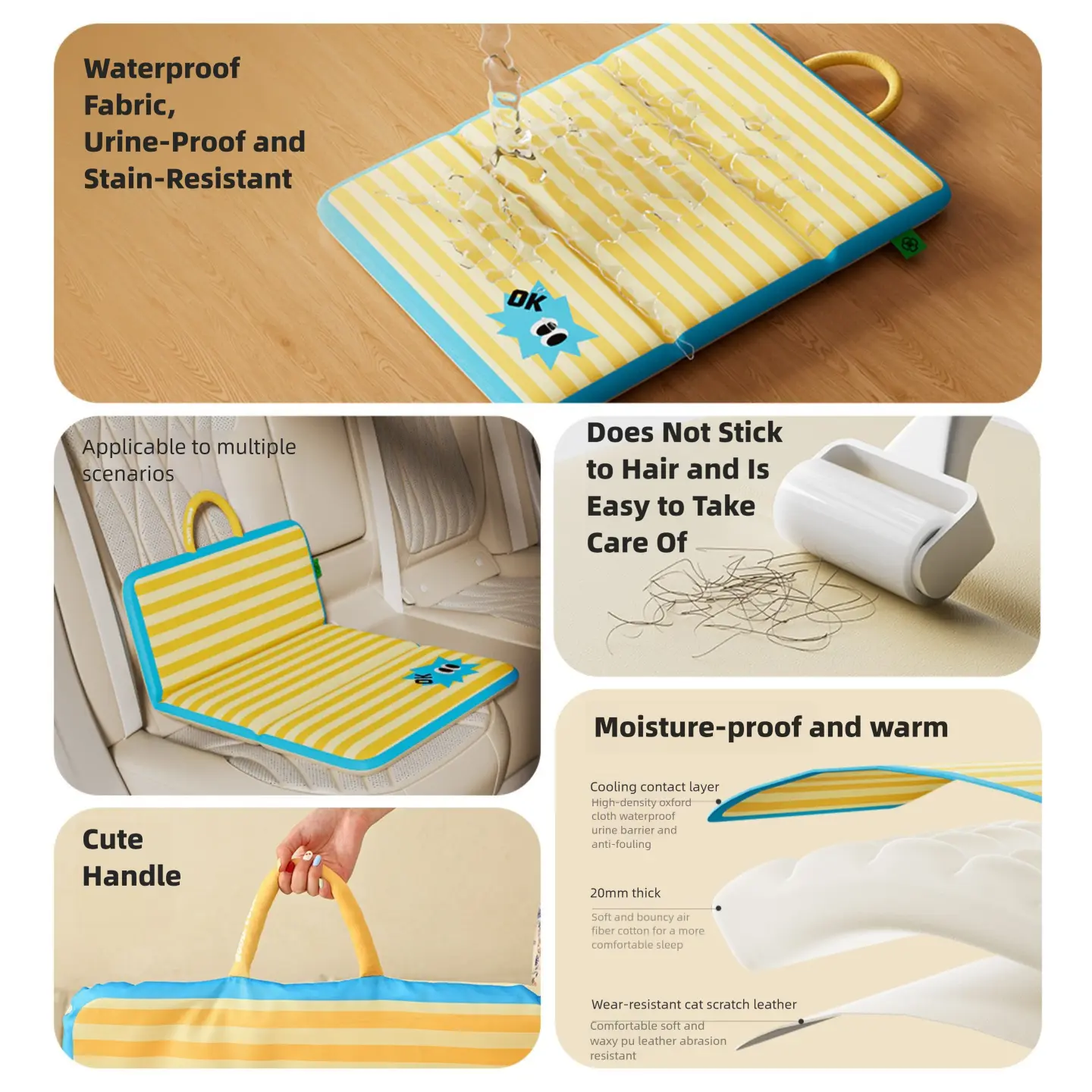 New all-season pet mat, double-sided, foldable, with handle, suitable for dogs and cats