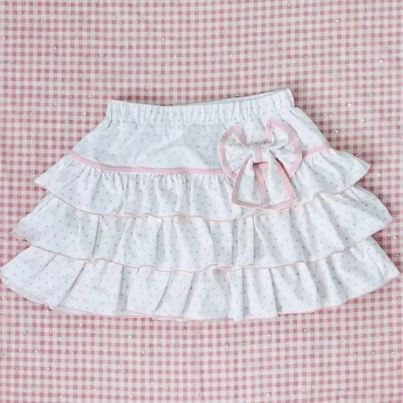 Pink Polka Dot Sweet Bow Mini Ball Gown Skirts Japanese JK Girls Teens Students Cute White Tiered Skirt Ballet Style Lolita Y2K