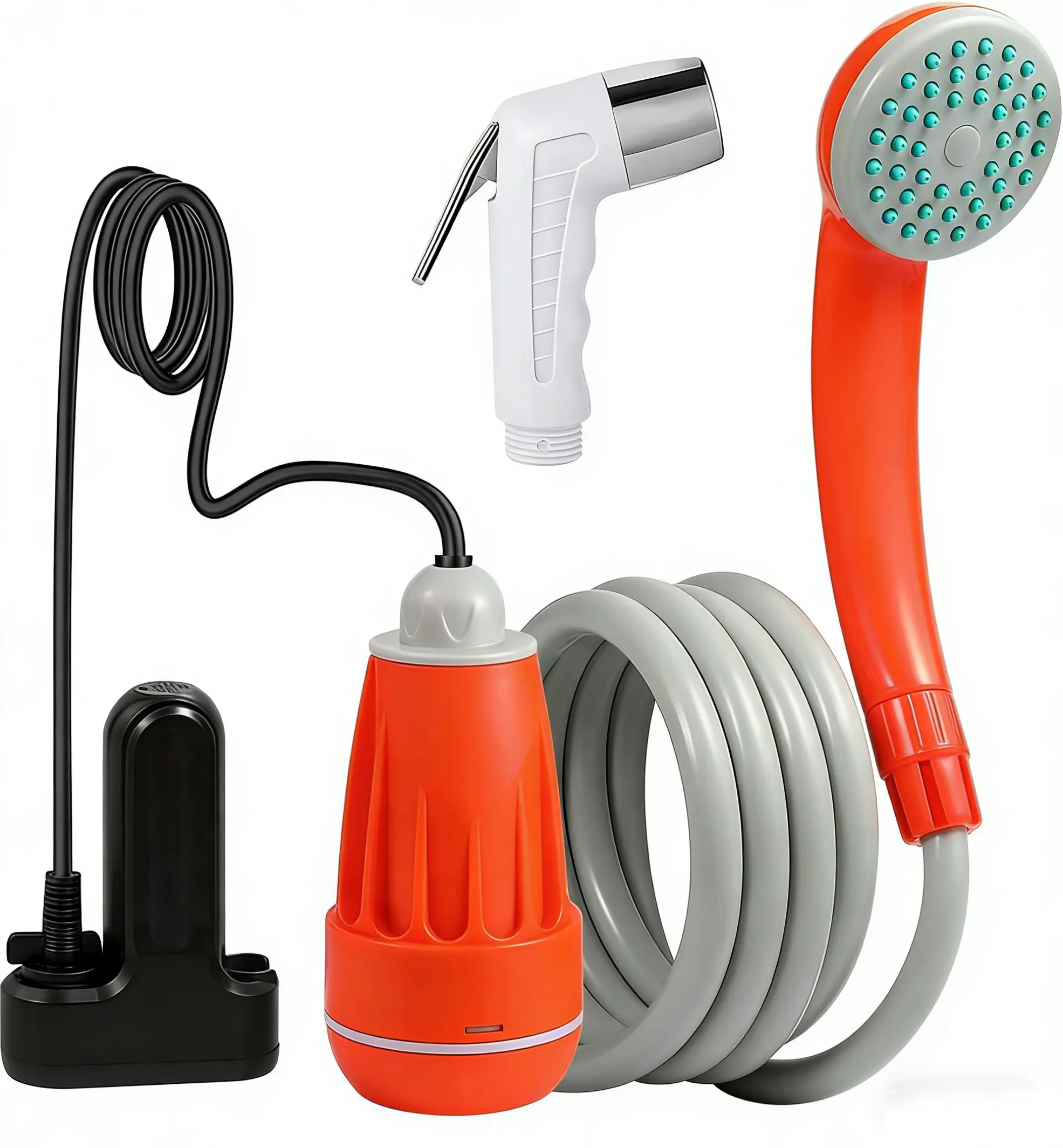 Portable Shower, Portable Camp Shower Pump with Rechargeable Battery, Portable Shower for Camping, Portable Outdoor Shower Head for Camping, Hiking, Traveling(+ Handheld Sprayer)