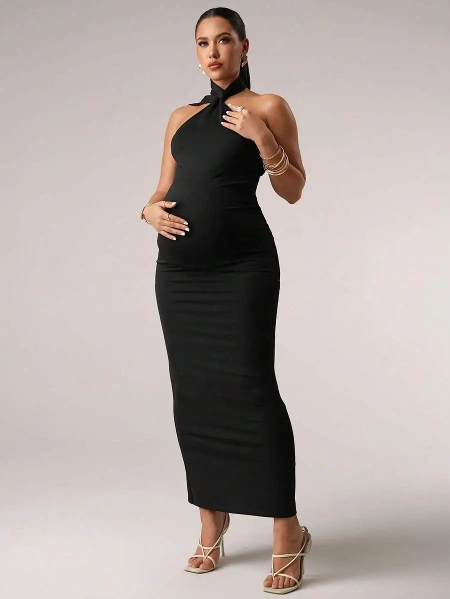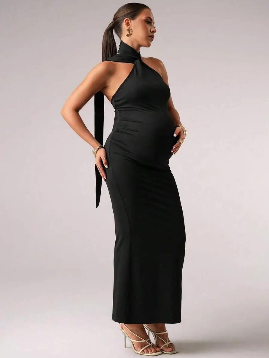 MISHELLA Pregnant Women's Sexy Backless Skinny Long Dress Summer Maternity Dress