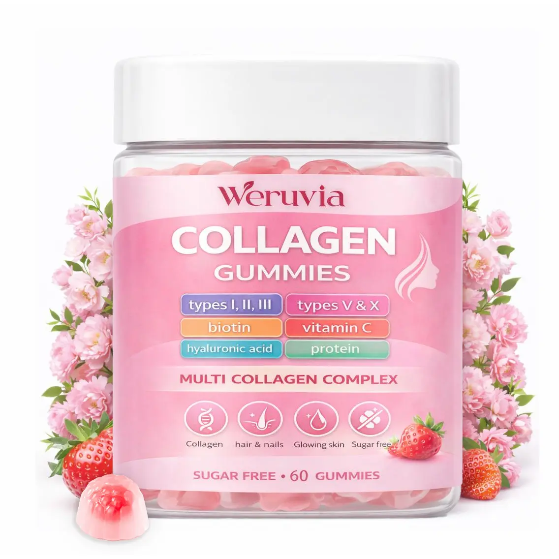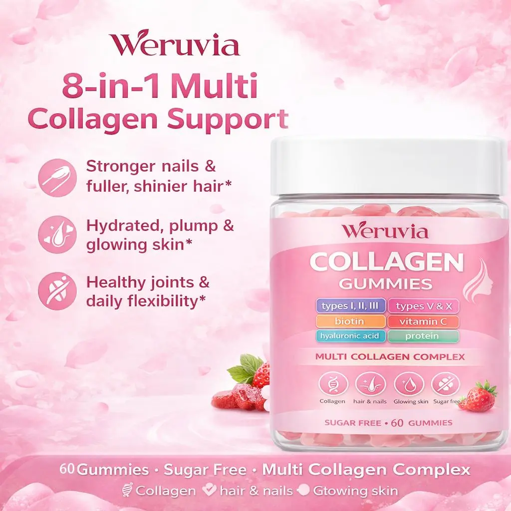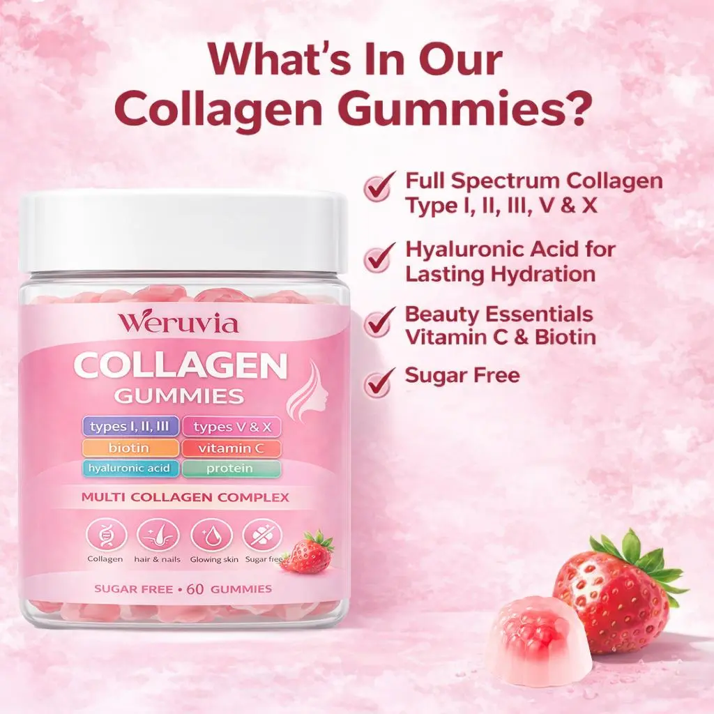 Multi Collagen Gummies (Type I, II, III, V & X) — 60 Count | With Biotin, Hyaluronic Acid & Vitamin C | Supports Skin, Hair, Nails & Joints | Pomegranate Berry | Sugar-Free, Non-GMO