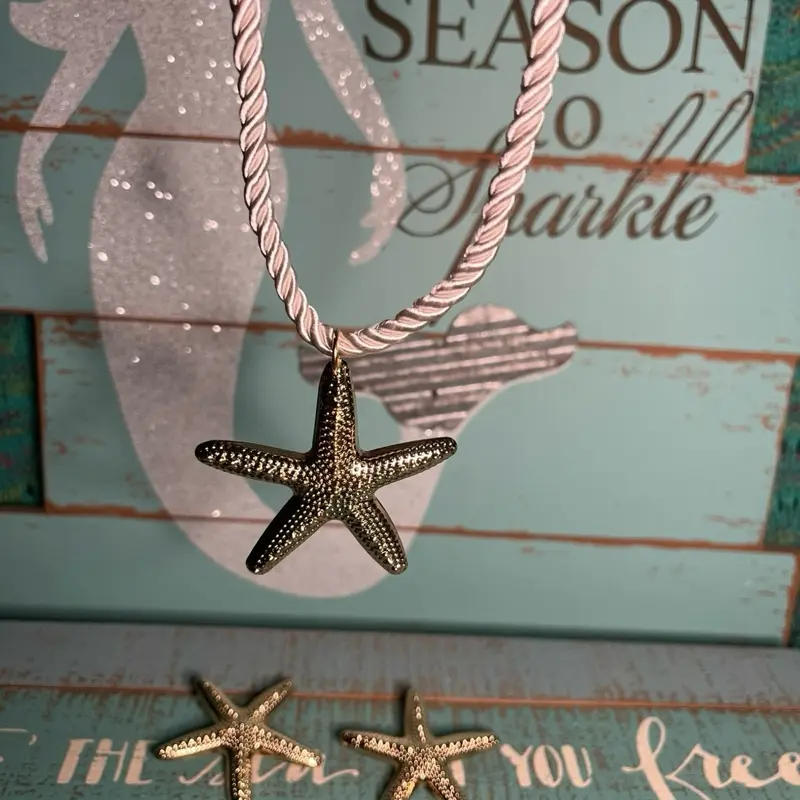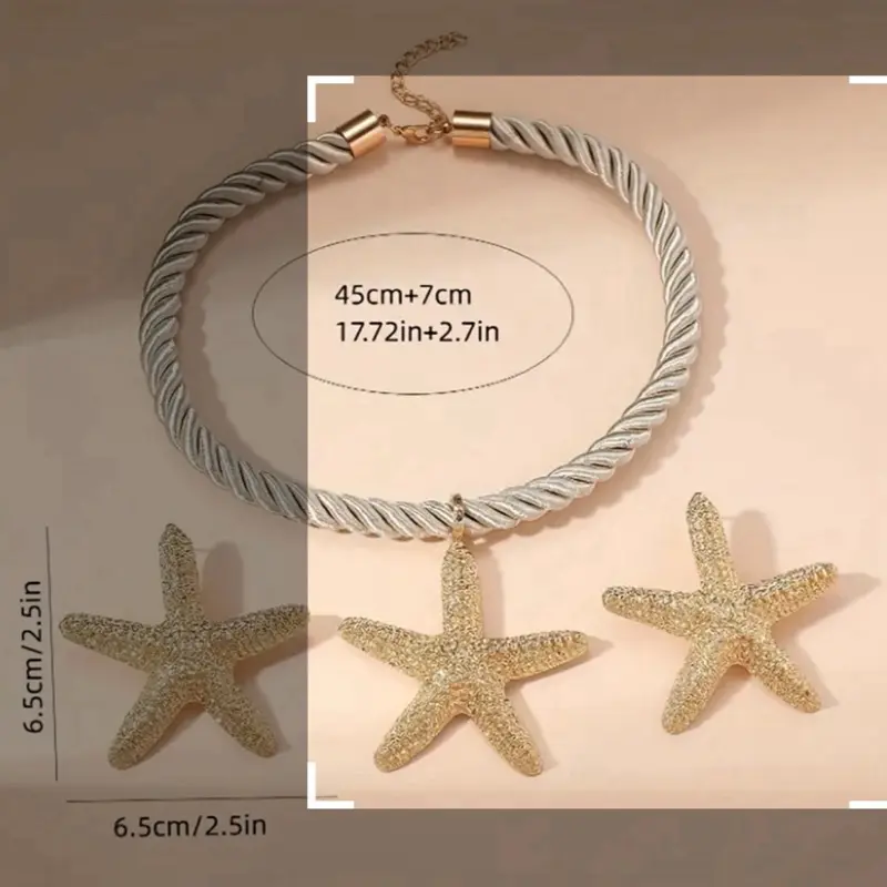 ·Necklace & Earrings: Both pieces showcase the starfish design.