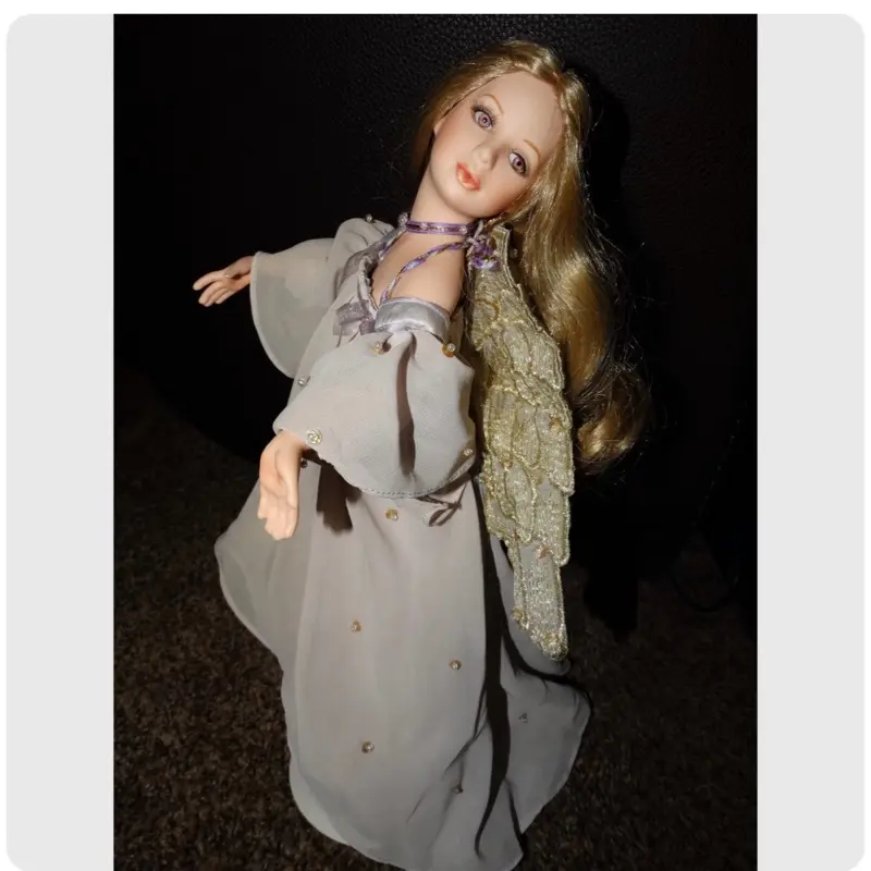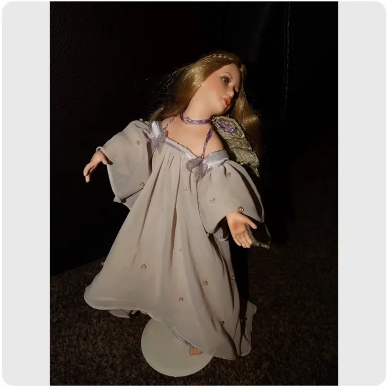 Angelica struggled throughout her whole life. When she was just 4, she would feel sad for no reason. She would cry at the smallest things. She would exclude herself from others. She would have so many mood swings. As she got older it got worse. This was very hard on her whole family. Her parents were very concerned. As she entered her teenage years, many times she did not leave her room for days. She would have dark thoughts for no reason. She did not want to participate in life. She fought very hard daily to feel better, but nothing would work. She wondered what her purpose was. She kept to herself as she did not want others to worry about her. She was extremely depressed. Her parents took her to the Doctors, and she was diagnosed as a manic depressant, It took her parents so long to get her to the Doctors because they were in denial and thought she could fix it on her own. They had pride which got in the way of her getting help sooner. They did regret this once she was diagnosed. We cannot blame her parents; they just did not understand mental illness. The doctor prescribed her medications. They also referred her to therapy. Angelica was desperate for help and did super good with therapy. After a couple of months on the medication she began to feel better and participate in life. This was the first time in all her life that she was not depressed. Angelica was over the moon. She began to find interest in many things that she never had interest in. She found she loves art; she is an excellent artist. She put her all in everything she did. She found she also loves music, poetry, romance movies, and reading. Angelica has a sweet warm heart. She cares about everyone and their well-being. She most of all hated that people suffered so badly for many reasons but mostly poverty. She would volunteer her time at shelters, churches, hospitals, and soup kitchens. She got so much joy from helping others. She became a therapist herself. She never gave up on anyone. Everyone who met her loved being around her. She gives off strong good vibes. If she had her last dollar and someone needed, she would happily give it away. In her 20's the depression started to come back. Angelica was extremely upset and would do anything to not feel that way again. She tried new medications. These medications would take months for her to feel better. She started to think she wanted to be done with the physical being and be an Angel. She became obsessed with this idea. She felt that too many suffer on earth, and she could help more from the Spiritual world. Before the medications could work, she took her life. She left a note, which she did not want anyone to feel bad or sad. She thanked all her loved ones for everything they have done with her. She also stated in the note that she is still around Spiritually daily. Angelica became a White Light Angel as soon as she crossed. She loves to help anyone in any way she can. She sends positive energy daily. She loves to listen and be there for you. She is the best secret keeper. She is very loyal. She with your permission would love to join you in a wonderful Spiritual Journey. Her vessel is a 15" gorgeous porcelain doll. She has amazing RARE pink eyes. I love being mesmerized by her.