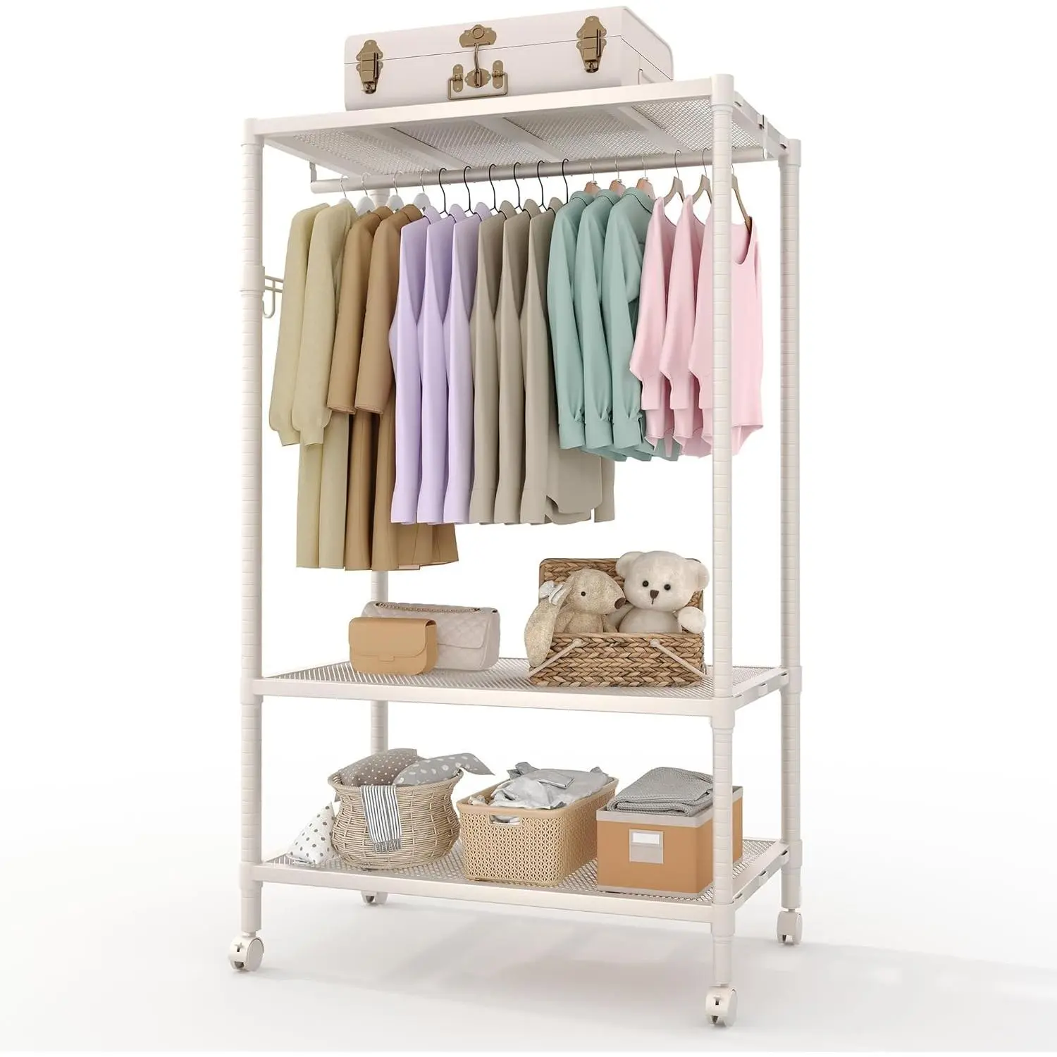 Heavy Duty Clothes Rack with Wheels, Holds Up to 693LBS, Rolling Clothing Garment Rack, Free Standing Closet Organizer for Storage & Hanging Clothes