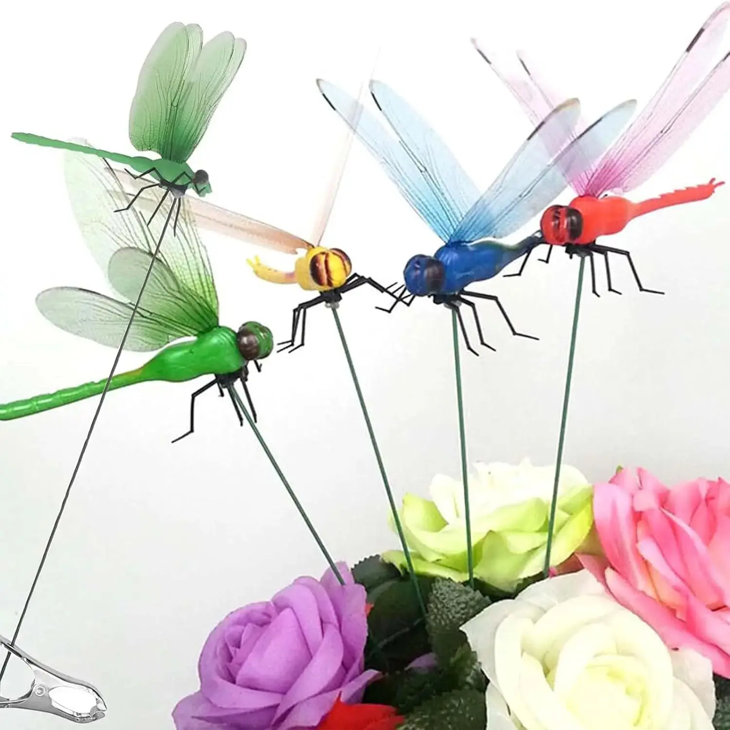 Set of 12 lifelike dragonfly clips featuring vibrant colors and intricate details. These clips add a natural appearance and color to your yard. The realistic design ensures they blend seamlessly into your outdoor decor.