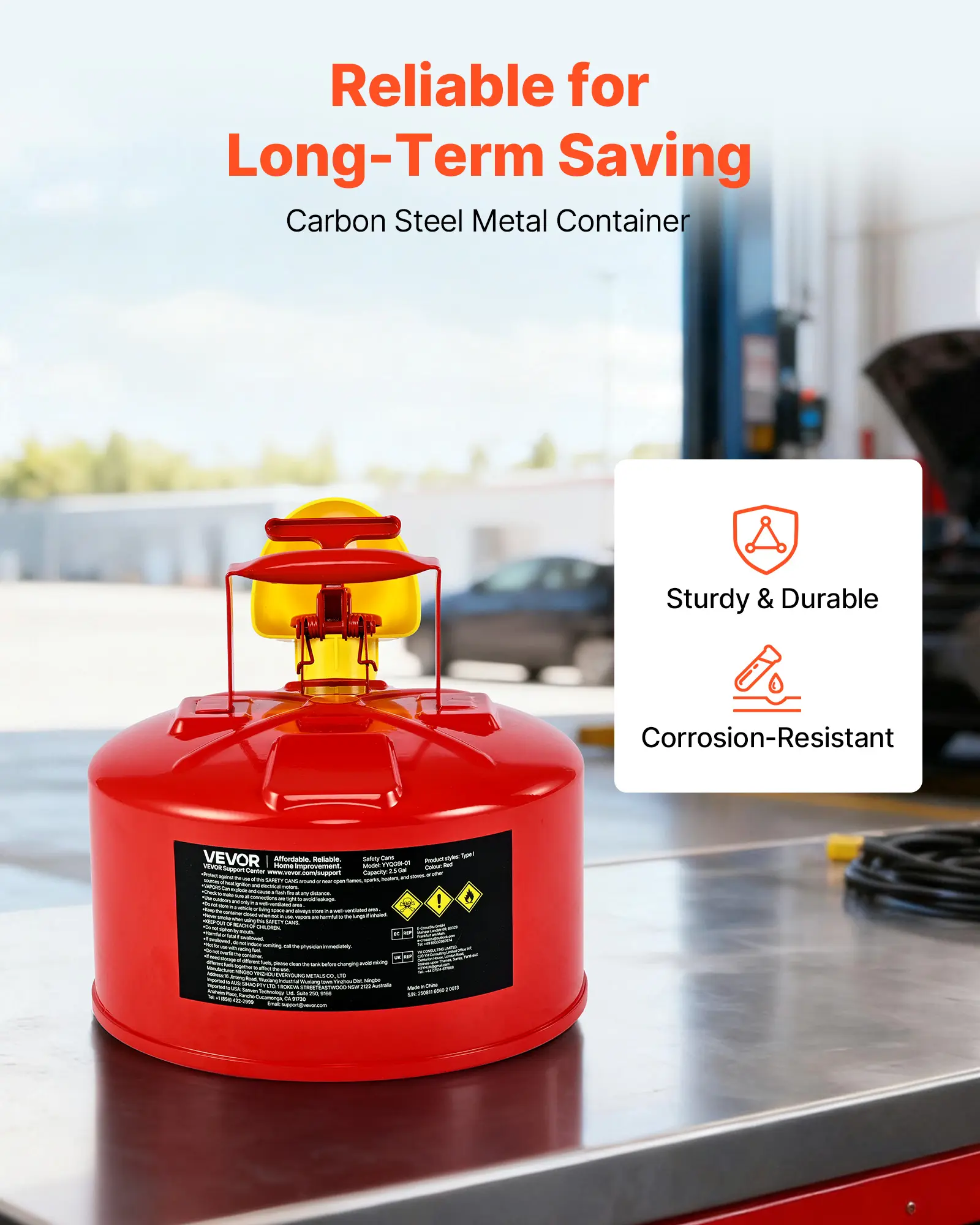 Durable Material: Made of thickened heavy-duty carbon steel, the steel gas can is sturdy, durable, corrosion- and rust-resistant in humid conditions. The double-interlock weldless bottom seam design enhances the can's sealing and stability