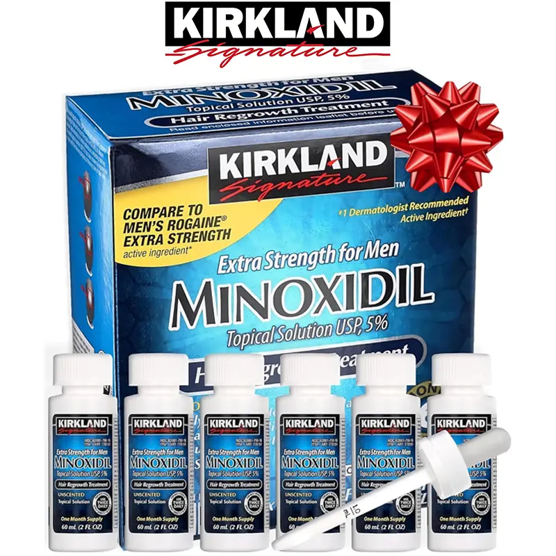 Kirkland Men's Anti-Hair Loss and Hair Growth Tonic, 5% Minoxidil Topical Solution, activates hair follicles, 6-month supply, 6-bottle pack, genuine product.