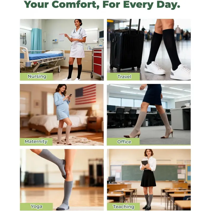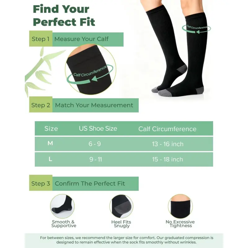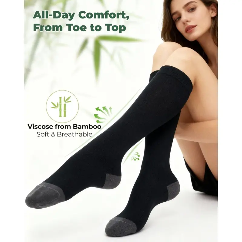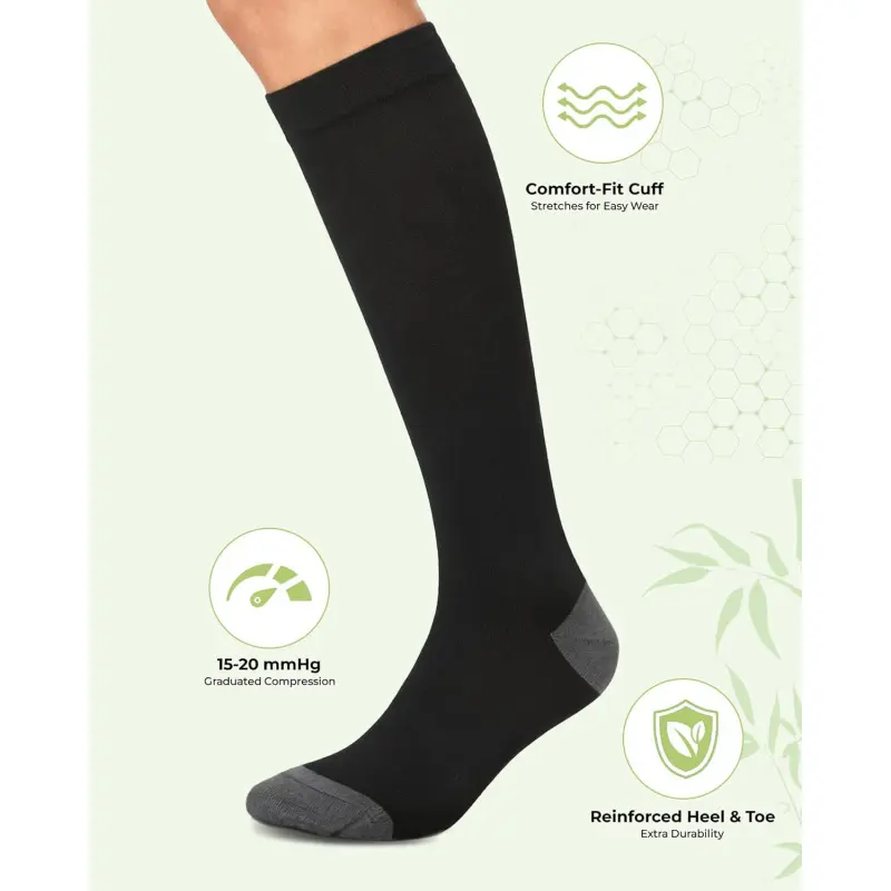 5. Compression Socks for Women 15-20 mmHg with Bamboo Viscose, 3-Pair Knee High Graduated for Travel, Work