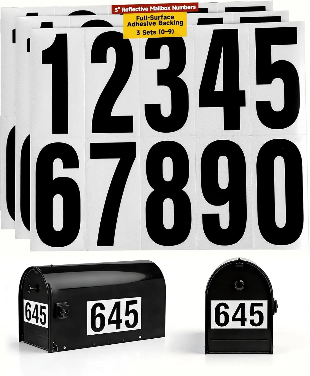 ·[3 Inch Standard Size, 3 Full Sets (0–9)]: Includes 3 complete sets of numbers (0–9) for a total of 30 pieces. The 3 inch size is the most commonly used size for mailbox numbers, offering excellent readability from the street while maintaining a balanced appearance on your mailbox. Ideal for single-sided or smaller applications, these numbers provide clear visibility and a professional look.