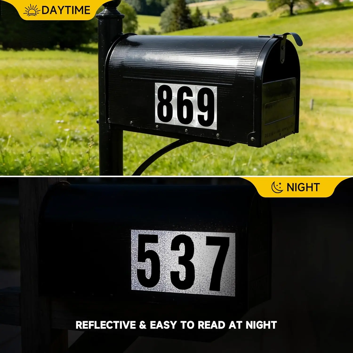 ·[Reflective Visibility for Nighttime Safety]: Made with premium reflective vinyl, these 3-inch mailbox numbers shine bright when illuminated by headlights, flashlights, or streetlights. Ideal for increasing visibility at night, ensuring quick address recognition for delivery drivers, visitors, and emergency services.