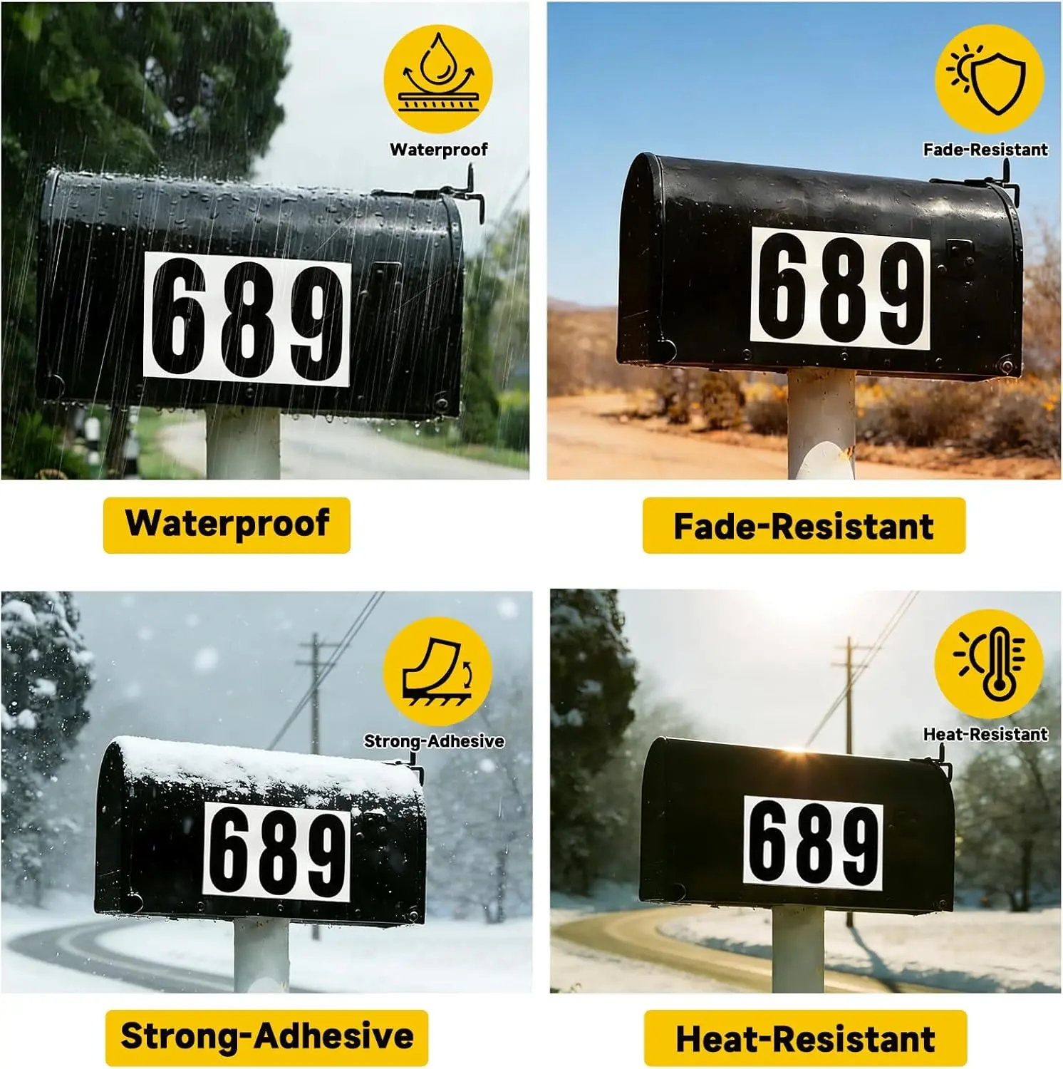 ·[Versatile Mailbox Numbers for Home Address Identification]: Perfect for residential, rental, and business addresses. These numbers can be applied to mailboxes, doors, fences, garage walls, and even garbage bins. No drilling required, providing a clean, simple address marking solution.