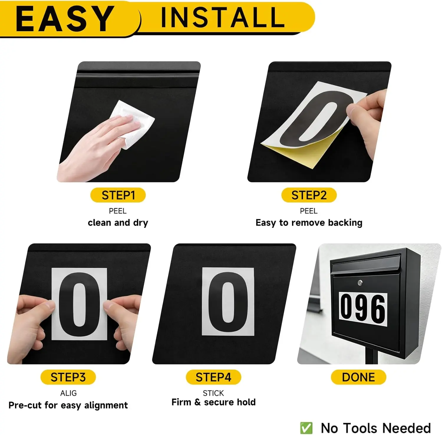 ·[Full-Surface Adhesive for Secure Placement]: Designed with a full-surface adhesive backing, these numbers stay firmly in place on metal or plastic surfaces, providing strong adhesion and preventing peeling or lifting.