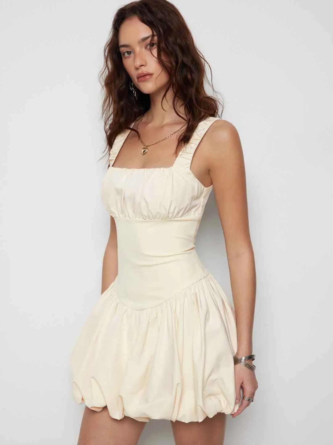 Love this! I love the tie in the back to define the waist and it’s a very soft material with multiple layers so it isn’t see through. I will have to sew the straps a little to make them shorter but that’s a me thing. Comes below my knee and I’m 5’1
