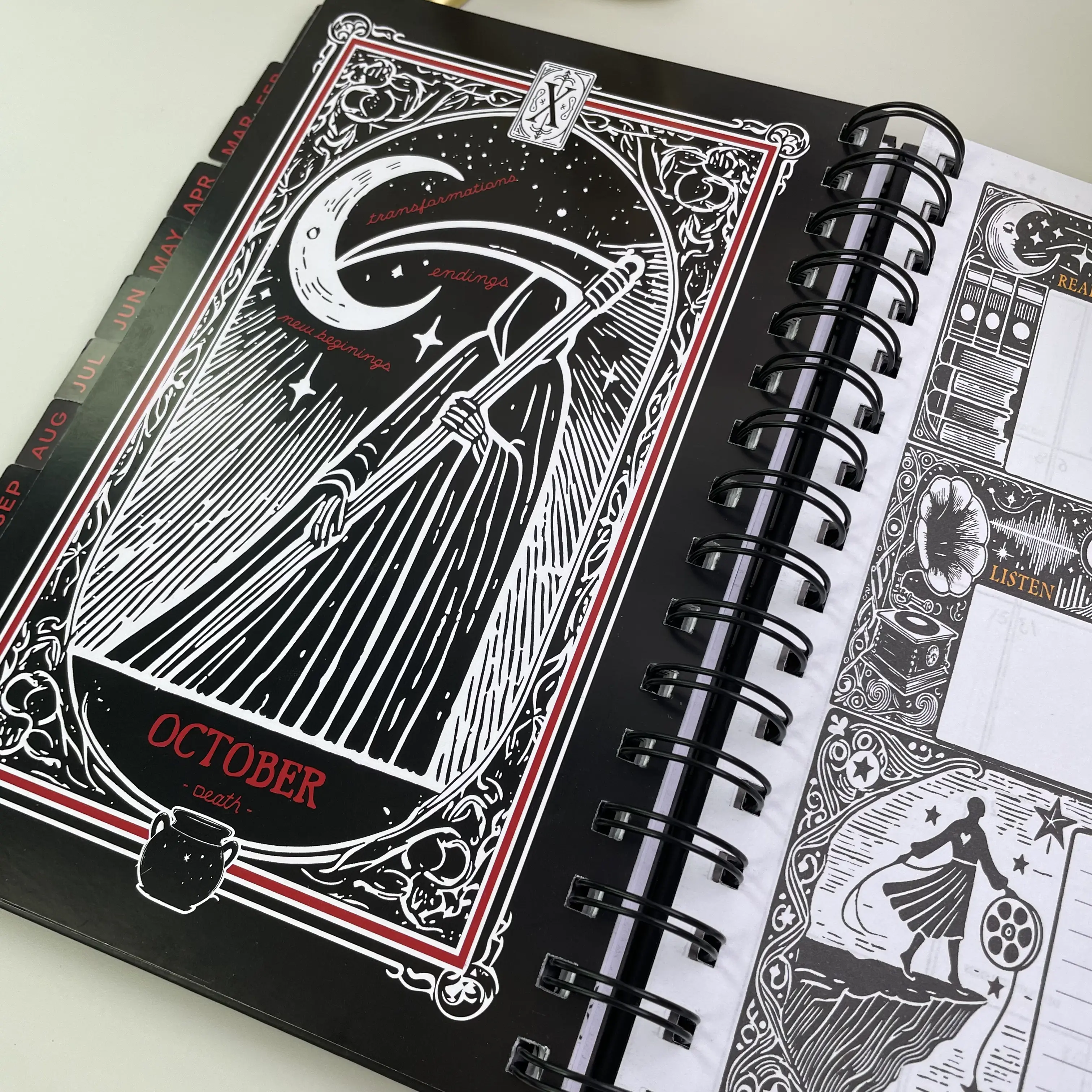 ·Astrology Moon Phase Clock Design: This planner features a vintage celestial clock design, perfect for spiritual and witchy users. It combines lunar phase tracking with weekly and monthly goal planning. Ideal for manifestation and self-care.