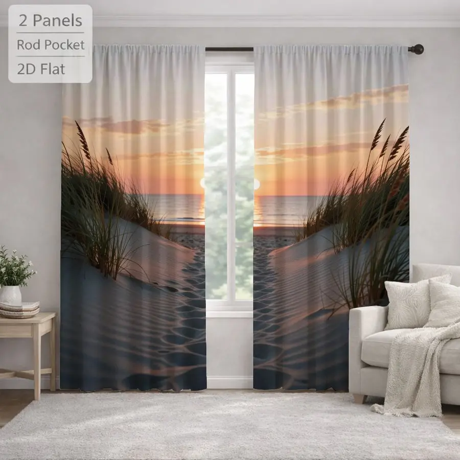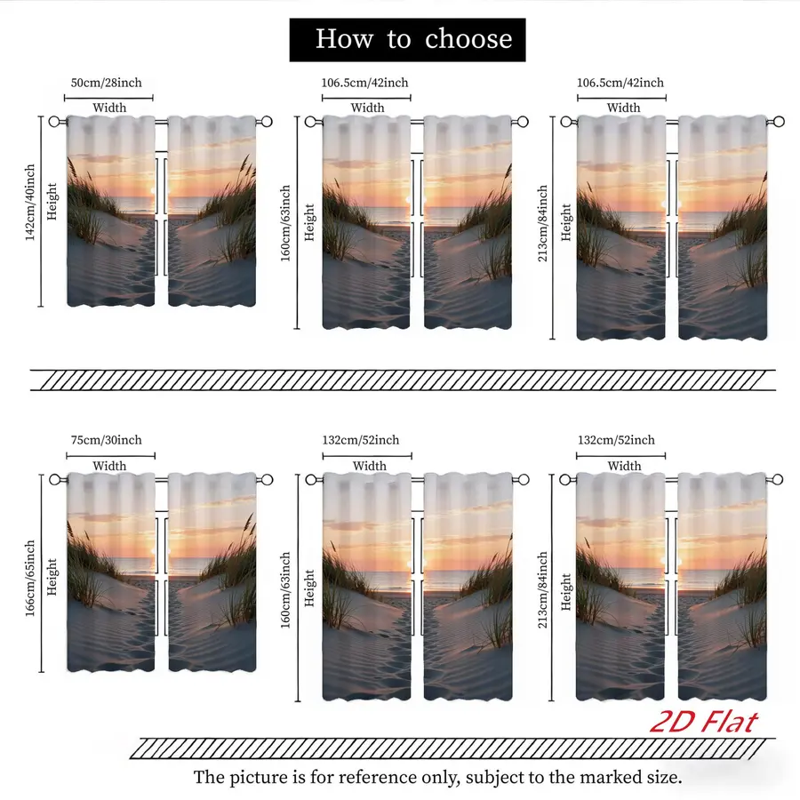 2Pcs Beach Landscape Sunset Pattern Seaside Scenery Sun Blocking Curtains Digital Printed Rod Pocket, Window Treatment For Bedroom Office Kitchen Living Room Study Home Decor