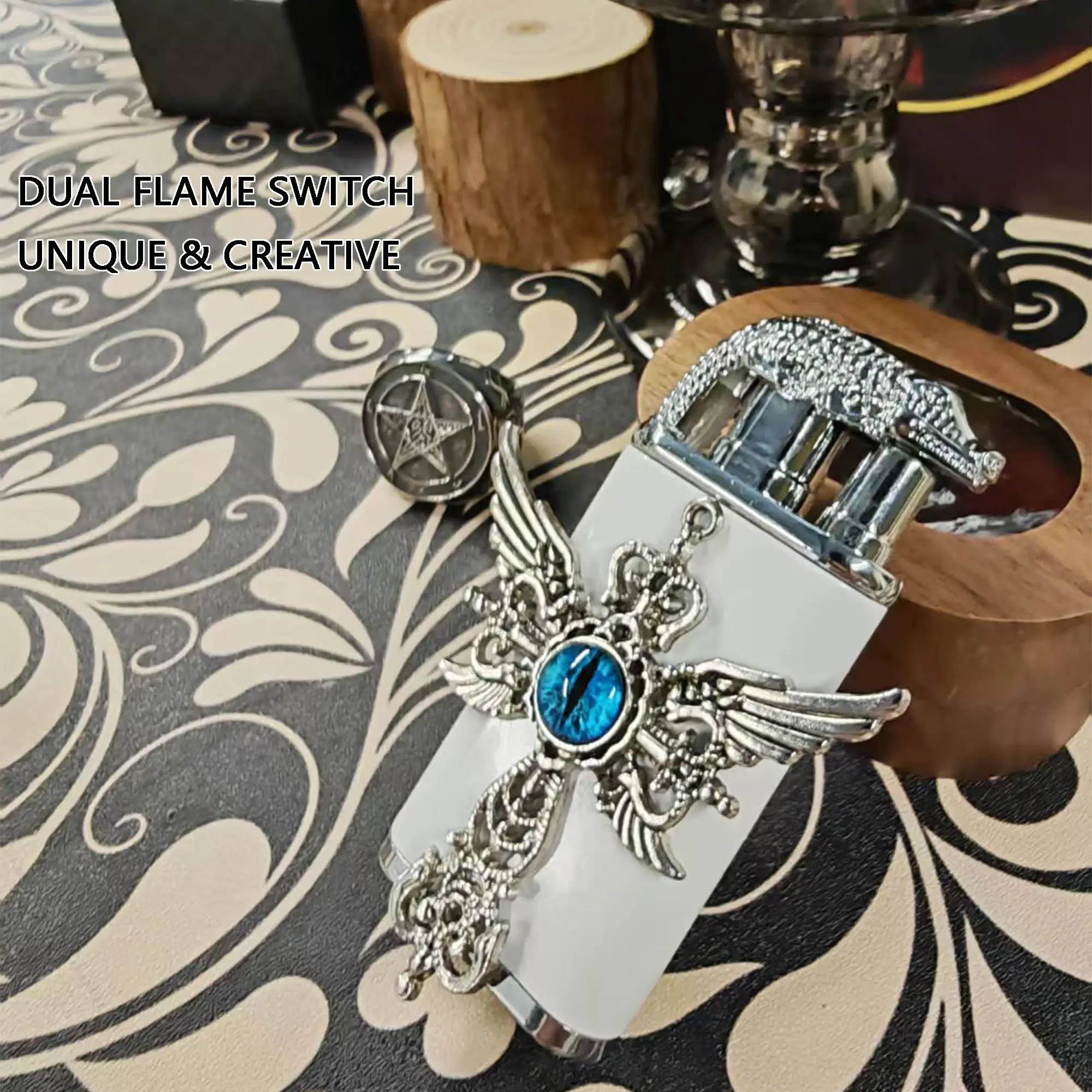 Stand out with this unique transparent skull/evil eye design. The visible blue jet flame creates a stunning visual effect. ️ Important: This lighter ships EMPTY (No Butane Gas Included) for safe shipping compliance. Simply refill with standard butane gas before first use.