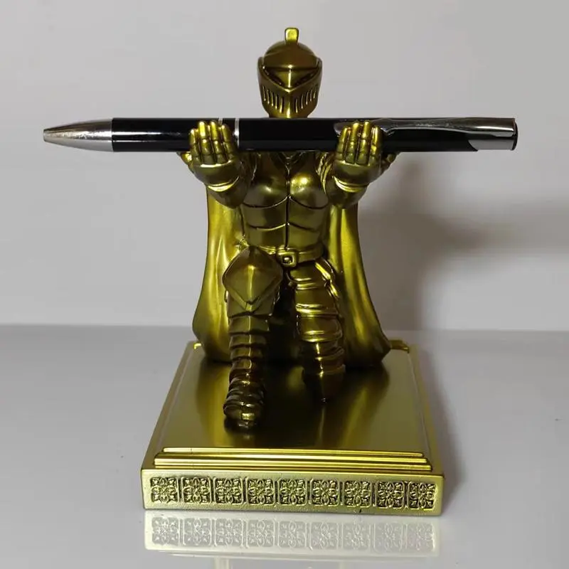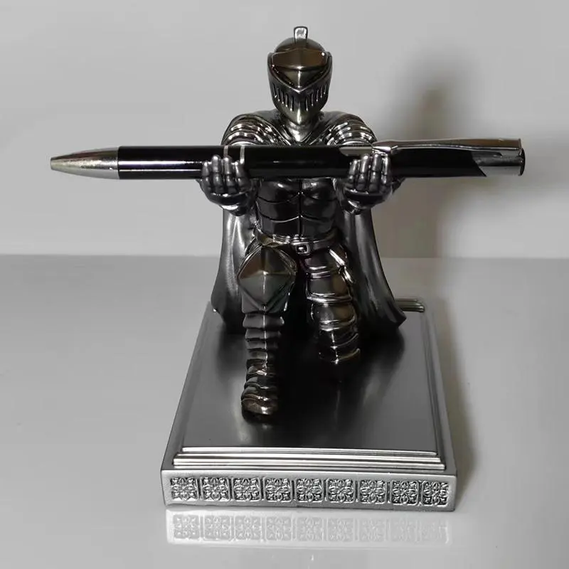 Pen Holder, Ornaments, 1Pc Executive Knight With Helmet, Bronze Statue, Home, Study, Office Decoration, Wearing Armor, Hero,