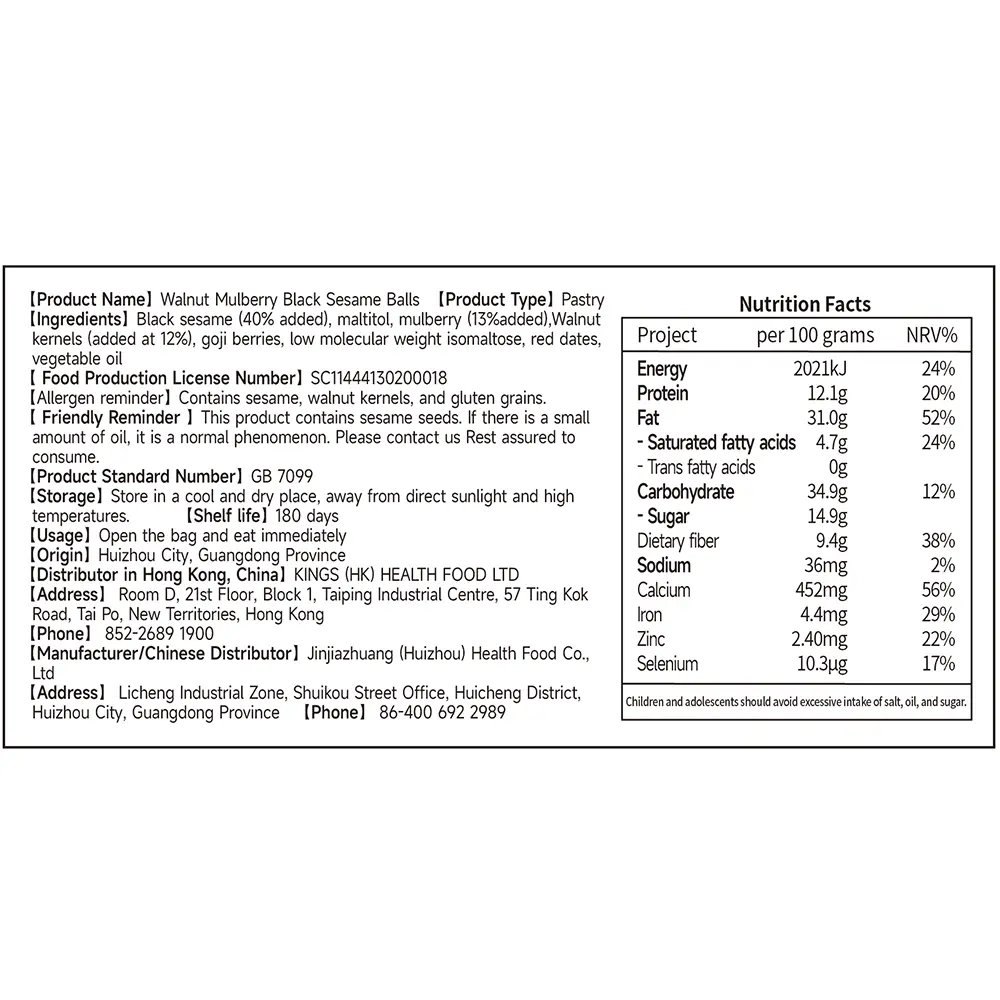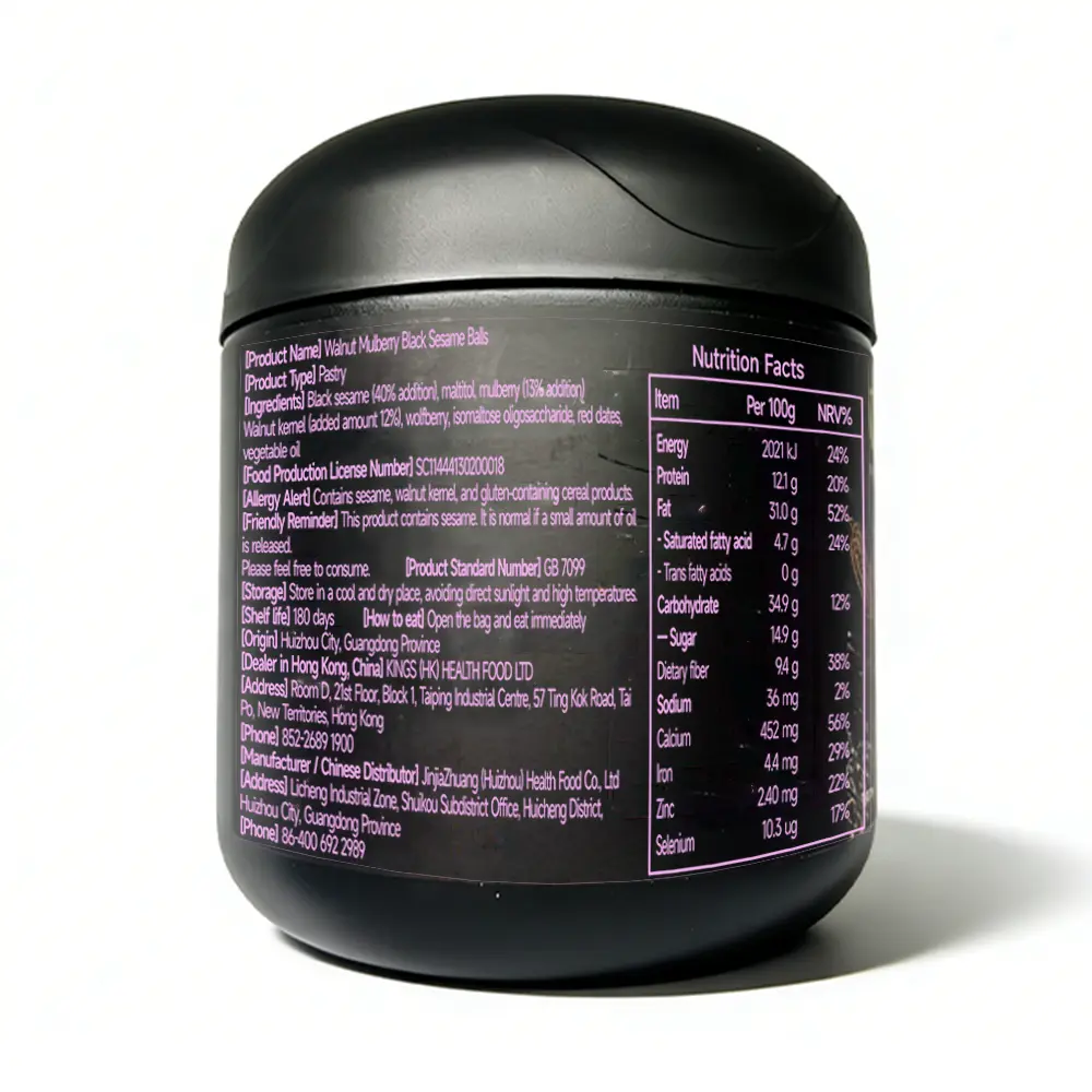 Jinjiazhuang Low-GI Walnut Mulberry Black Sesame Balls - Nourishing Snack with Prebiotics, No Sucrose, No Artificial Flavors or Colorings