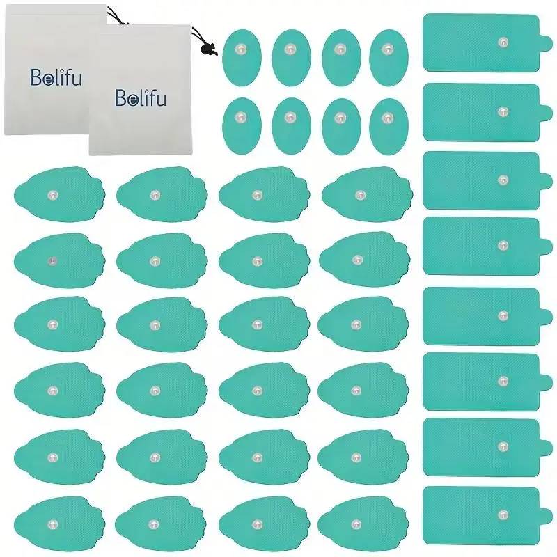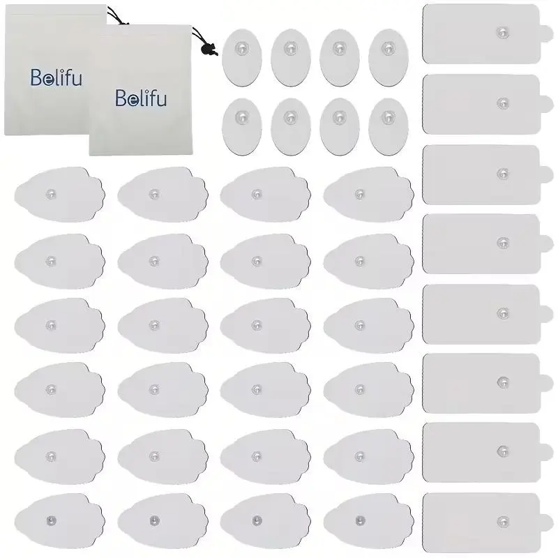 Belifu 40pcs TENS Unit Replacement Pads, Durable Snap-On Electrodes, Up to 50 Uses, Latex-Free, Compatible with All TENS & EMS Devices, 3.5mm Push-Button Wires, Black