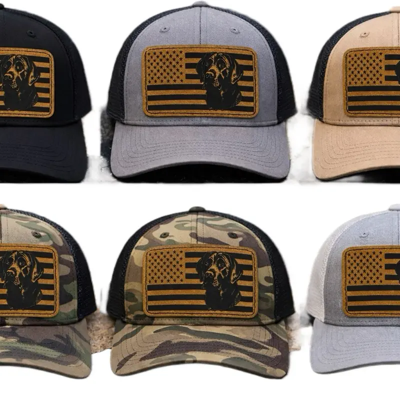 This trucker hat features a striking American flag design paired with a Black Lab dog motif. Perfect for fans of both patriotism and canine companions. The hat combines bold colors and a recognizable dog image, making it a standout accessory. Ideal for casual wear or events where you want to show your love for the USA and Black Labs.