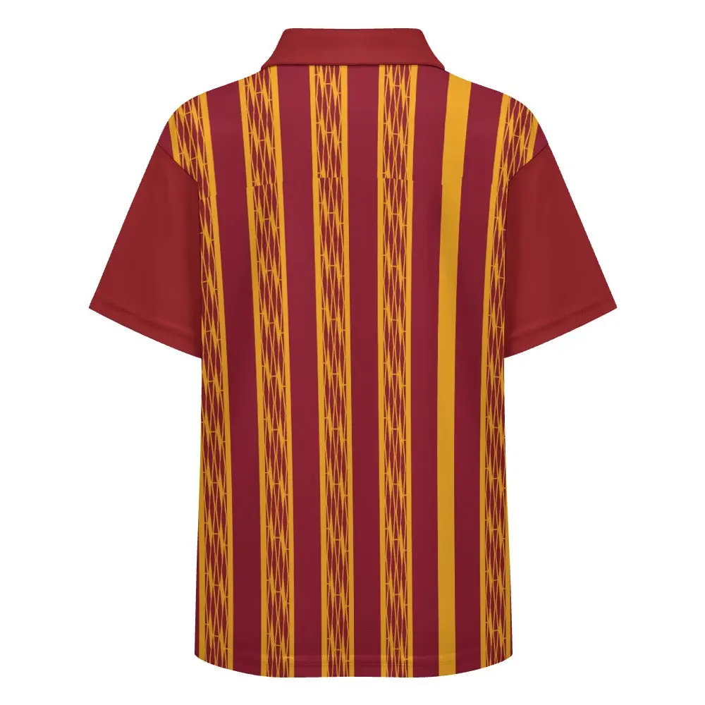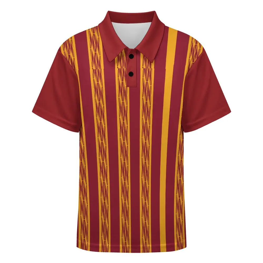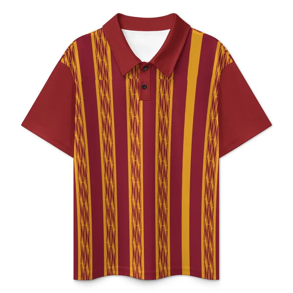 Red & Yellow African Kente Print Buttoned Polo Shirt
