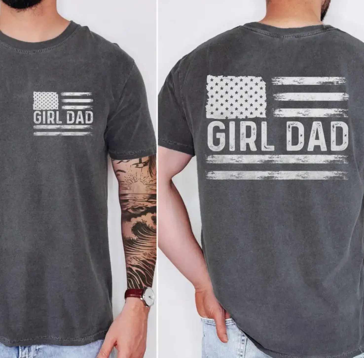 Girl Dad T-Shirt, Cool Dads Club Tee, American Flag Patriotic Dad Tee, Father's Day Gift, New Dad Gift, Trendy Father’s Day Shirt, Full Colors, Full Sizes